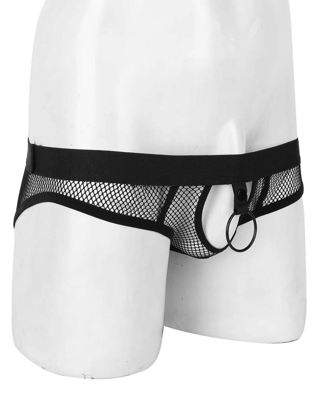 Трусы мужские, прозрачные, с металлическим уплотнительным кольцом, с низкой посадкой, с эластичной талией, открытые, трусы с сеточкой