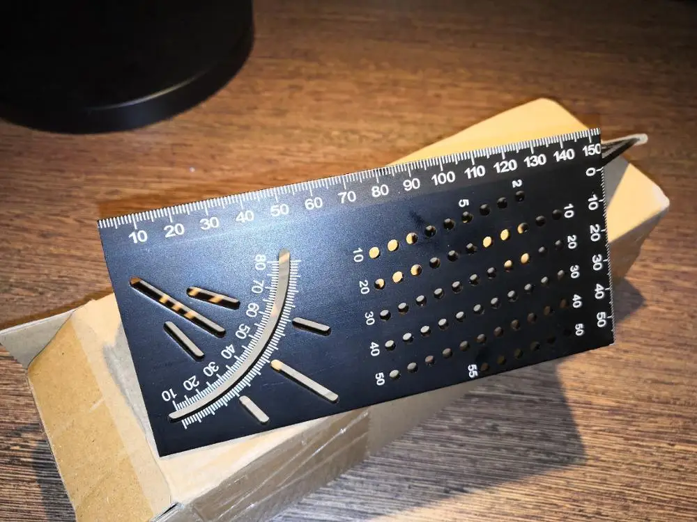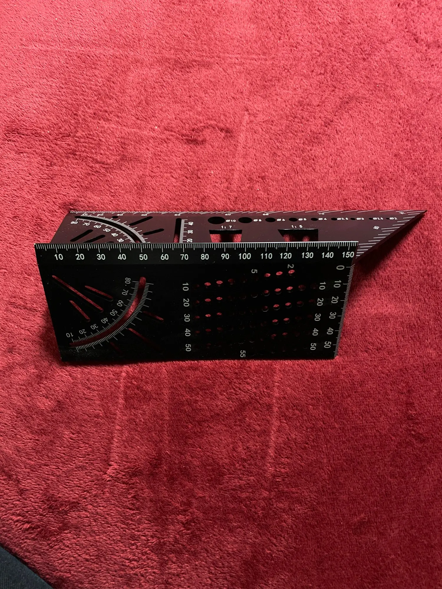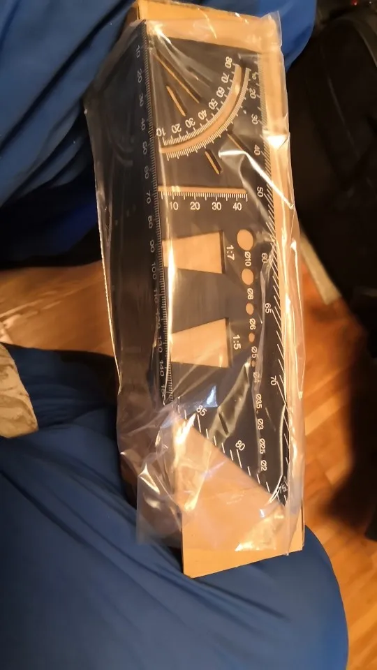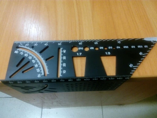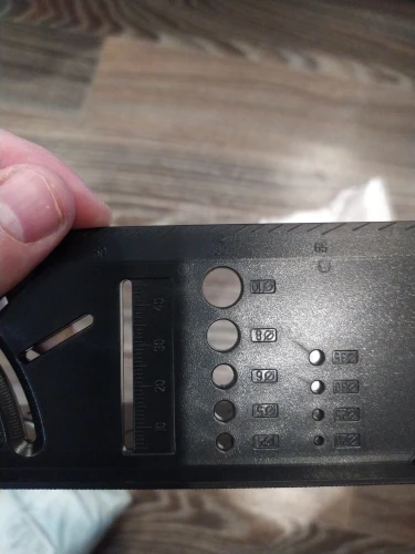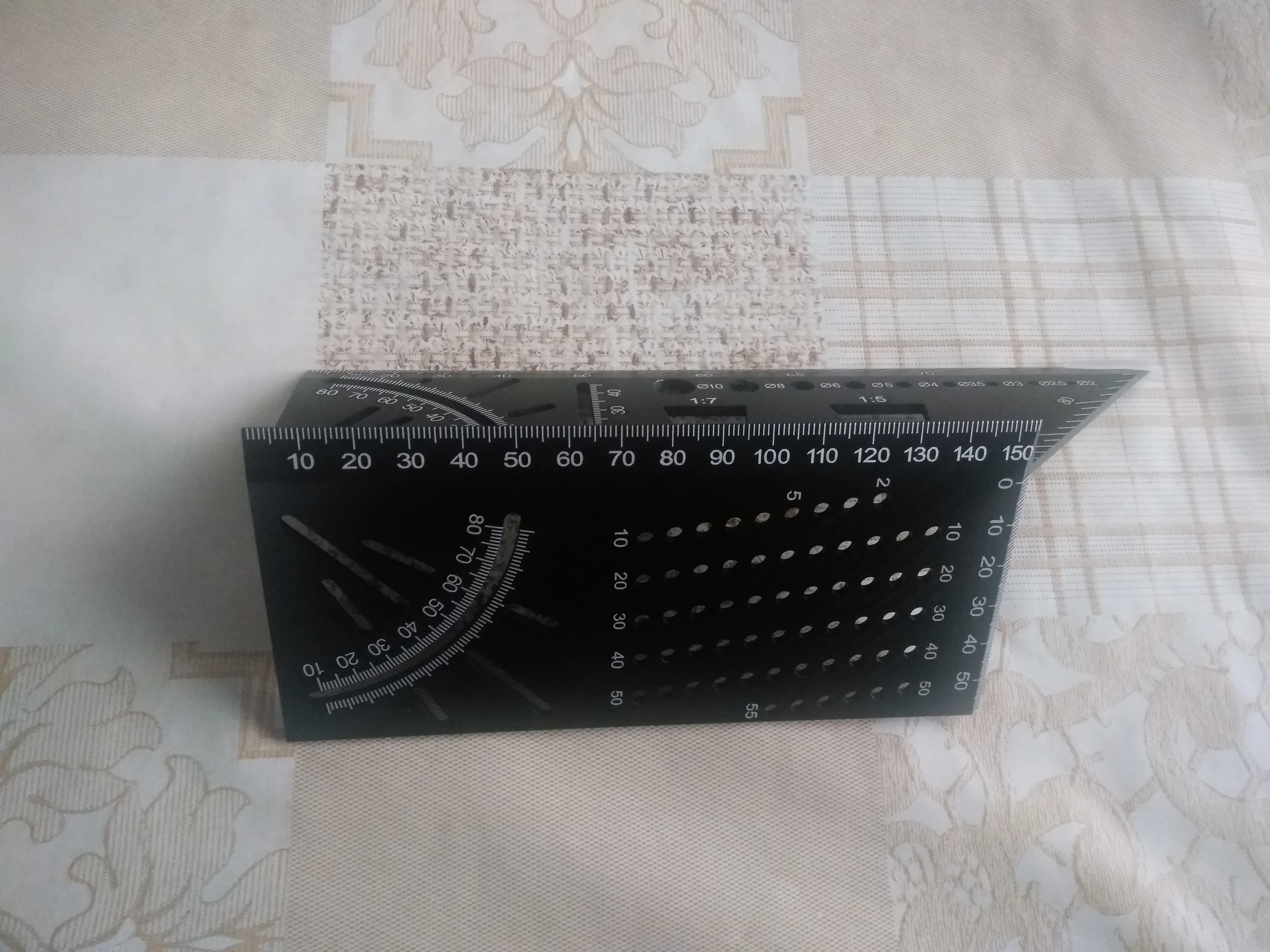 Заказал 30.10.20, получил в Киеве уже 12.11.20!!! Описание соответствует. Пластик плотный, если аккуратно обращаться - случайно не треснет. Есть разметка на 45, 30 и 60 градусов, удобный шаблон под 45, отметки с отверстиями от 3,5 до 10 мм. Продавца рекомендую.