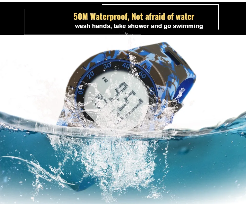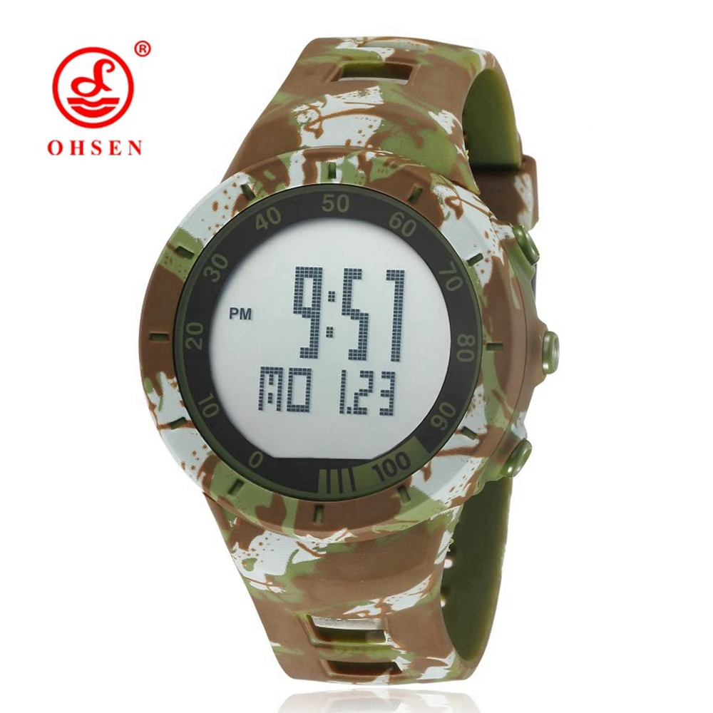 Цифровые мужские спортивные часы Секундомер 50 м для дайвинга модные камуфляжные зеленые Военные Светодиодные наручные часы мужские противоударные часы