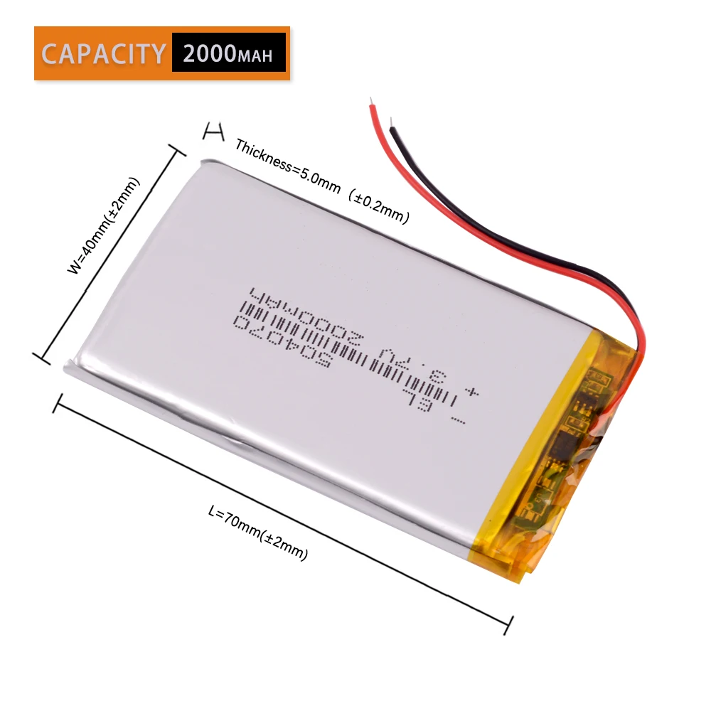 3,7 В, 2000 мА ч, 504070 литий-полимерныйлитий-ионный аккумулятор для игрушек, POWER BANK,GPS,mp3,mp4