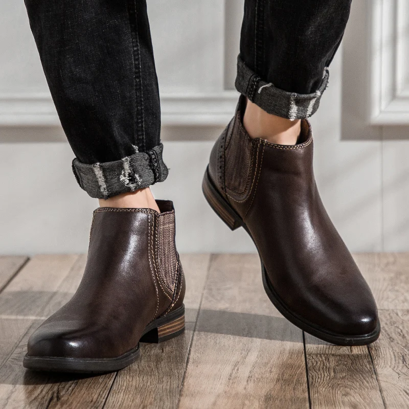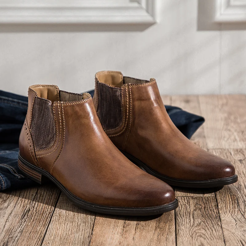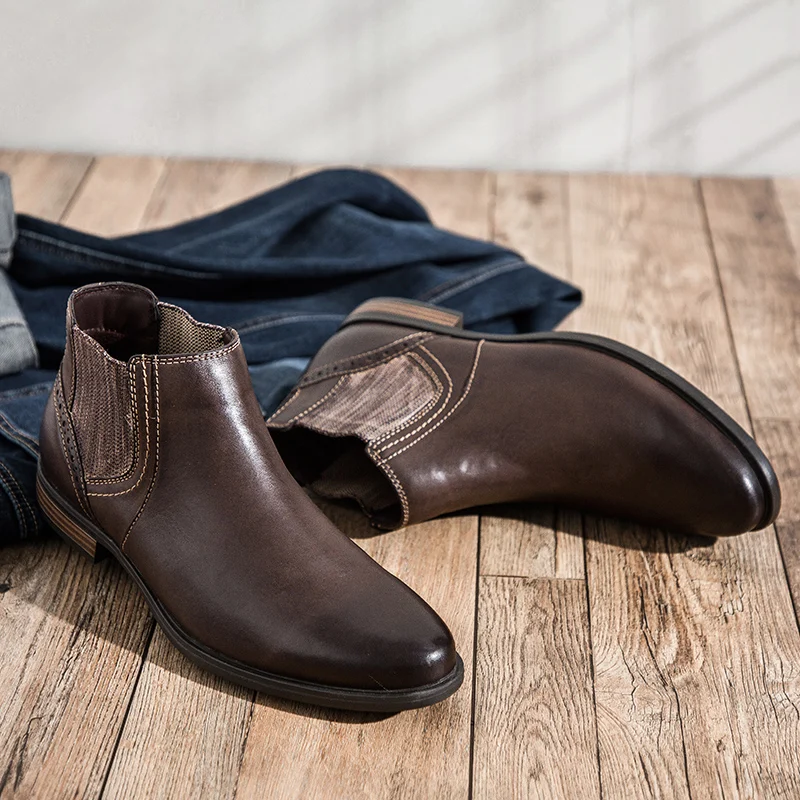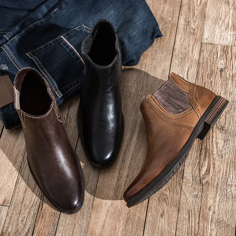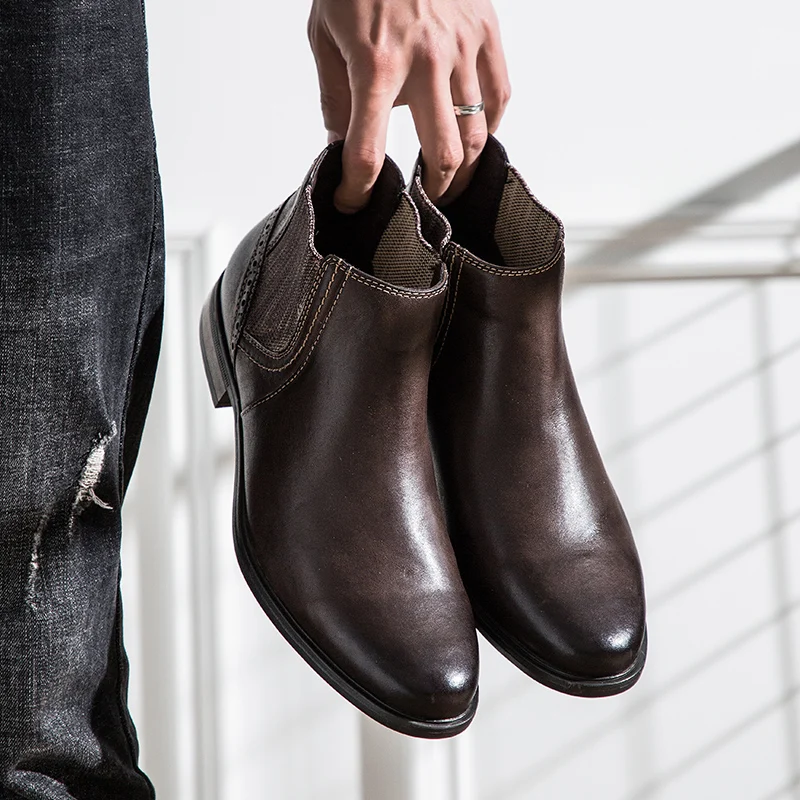 Мужские ботинки челси yomт., Винтажные ботинки из натуральной кожи, деловой стиль, Классическая обувь для осени и зимы, 2019