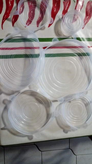 Я очень доволен. Я еще не использовал все размеры. Из этих силиконовых кругов. Гибкий, как и должно быть. Они очень прочные для желаемого использования. Один из маленьких кругов на стекле воды или маленькой чашке. Это очень практично. Это позволяет мне избежать использования пленки для небольших использований. Большое спасибо.