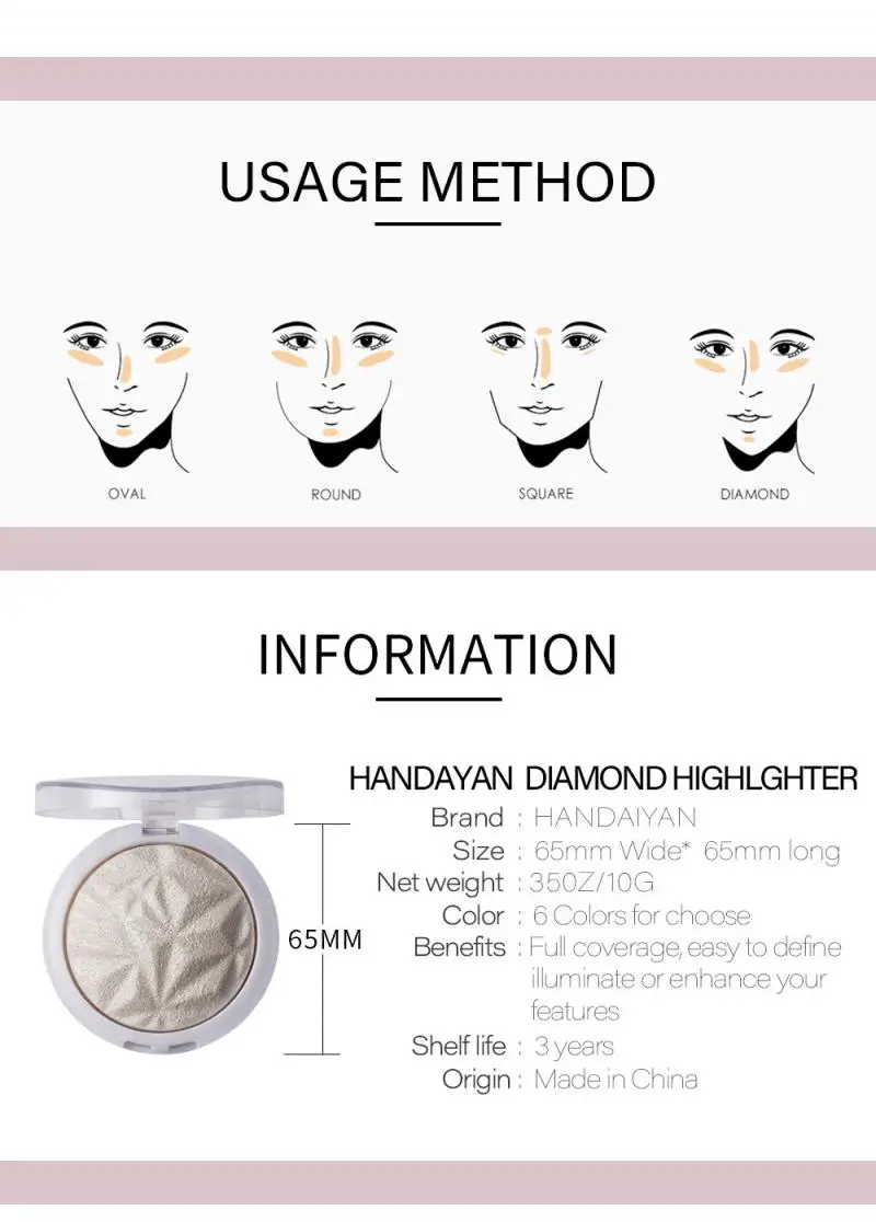 6 цветов бронзеры для лица хайлайтеры пудра для макияжа Палитра контурная пудра блеск для лица сияющая Пудра Косметические Инструменты TSLM1