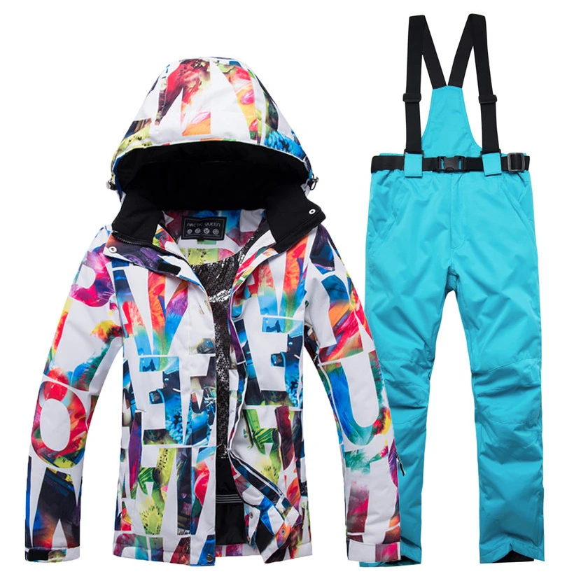 Женский лыжный костюм, модная водонепроницаемая ветрозащитная куртка и штаны для катания на лыжах и сноуборде, комплект зимней одежды