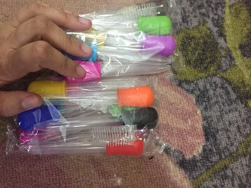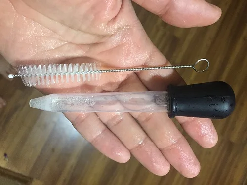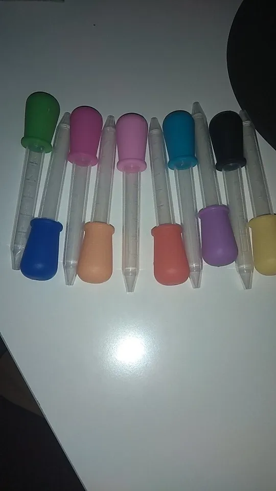 Хорошо сделано. В комплект входит два очистителя для легкой очистки. Каждая капельница имеет цвет, если вы должны использовать их с различными жидкостями. Тела указали отметки емкости в мл для измерения количества. Я надел ручку, чтобы сравнить размер