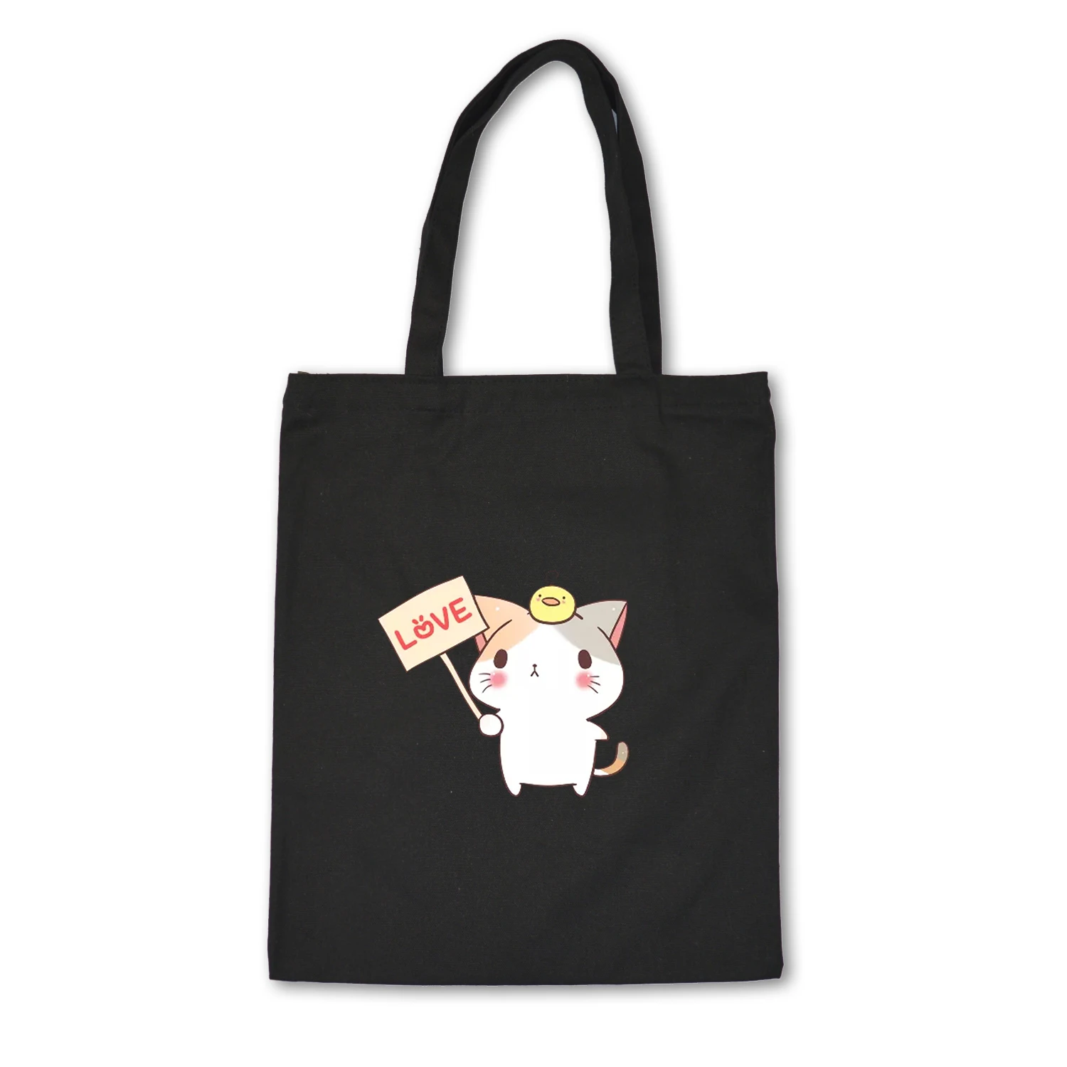 Холщовая женская сумка для покупок, с принтом в виде котенка