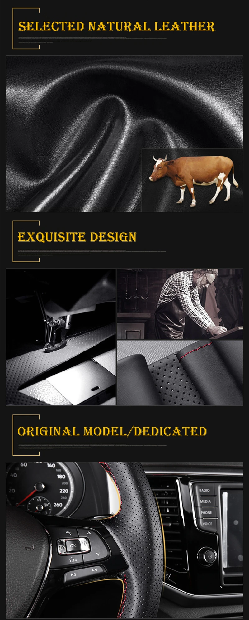 Все наши чехлы изготавливаются по индивидуальному заказу в соответствии с оригинальным автомобильным рулевым колесом, будь то кожа или резиновое рулевое колесо, пожалуйста, установите наш чехол непосредственно вместо того, чтобы удалить старую кожу, а затем установить.