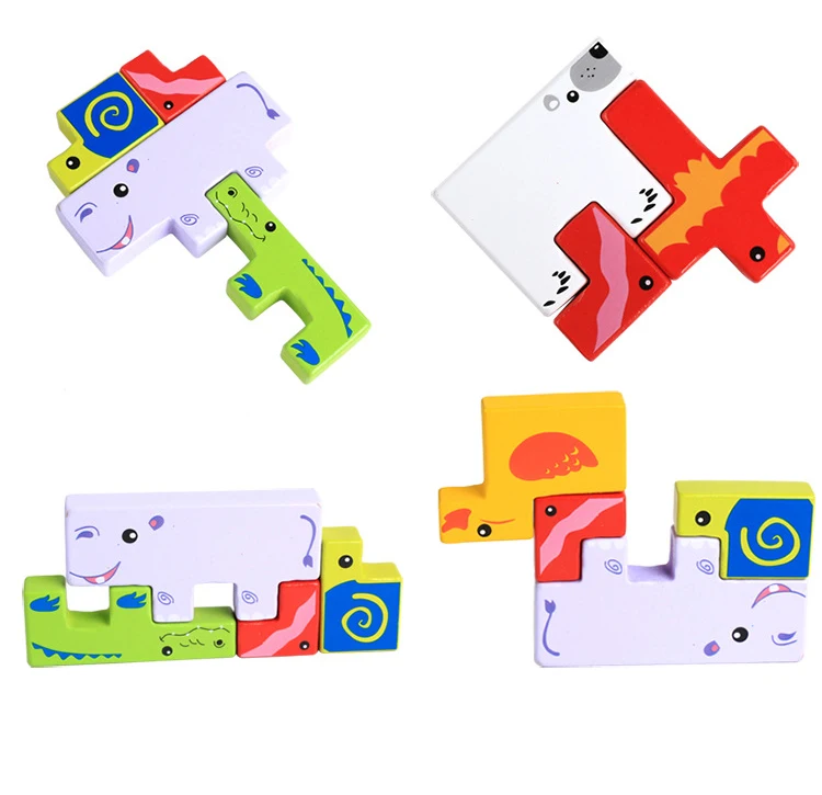 Деревянные игрушки Монтессори для раннего обучения детей с мультяшными животными головоломка развивающие игрушкиигрушки для детей3D электролобзик