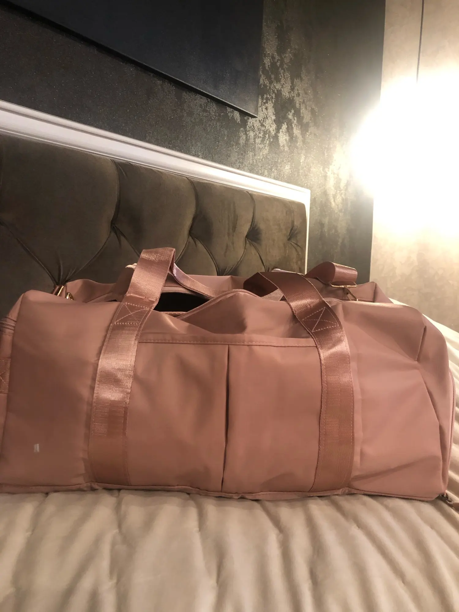 очень красивая вместительная сумка, для зала большевата , на самом деле, но я много путешествую - пригодится! пришла очень быстро - дней за 10!