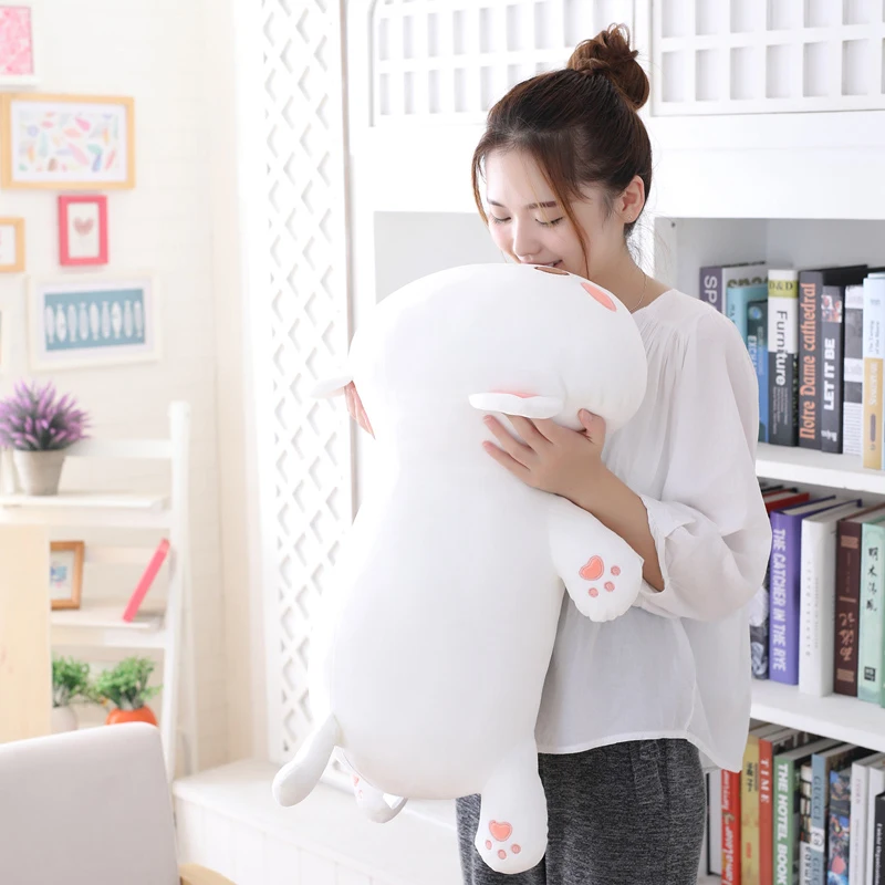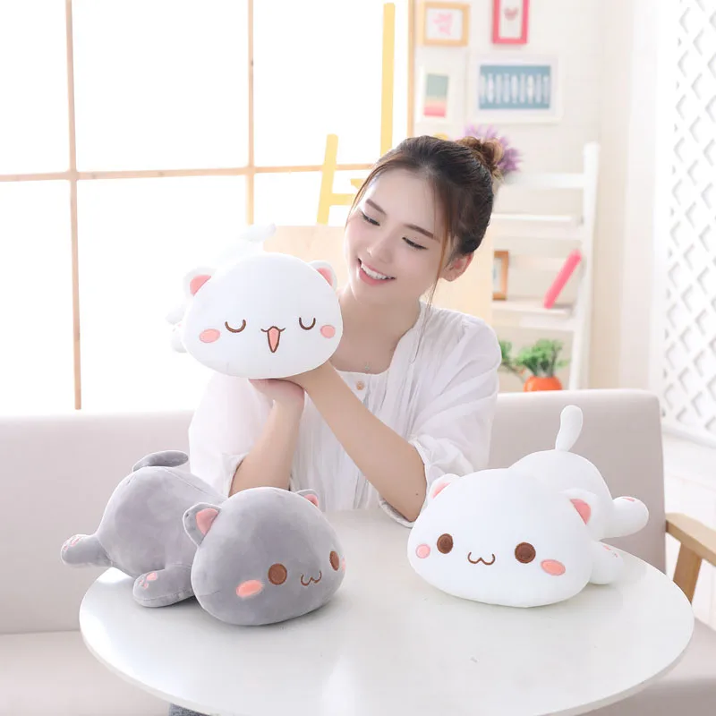 Мягкая игрушка в виде кошек, милая мультяшная серая белая Лежащая игрушка с закрытымиоткрытыми глазами, кошка, животное, детская Успокаивающая игрушка, подарок для друга 355065 см