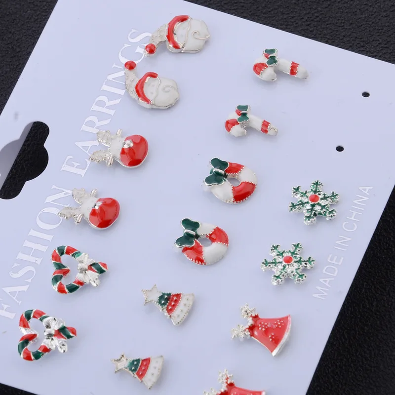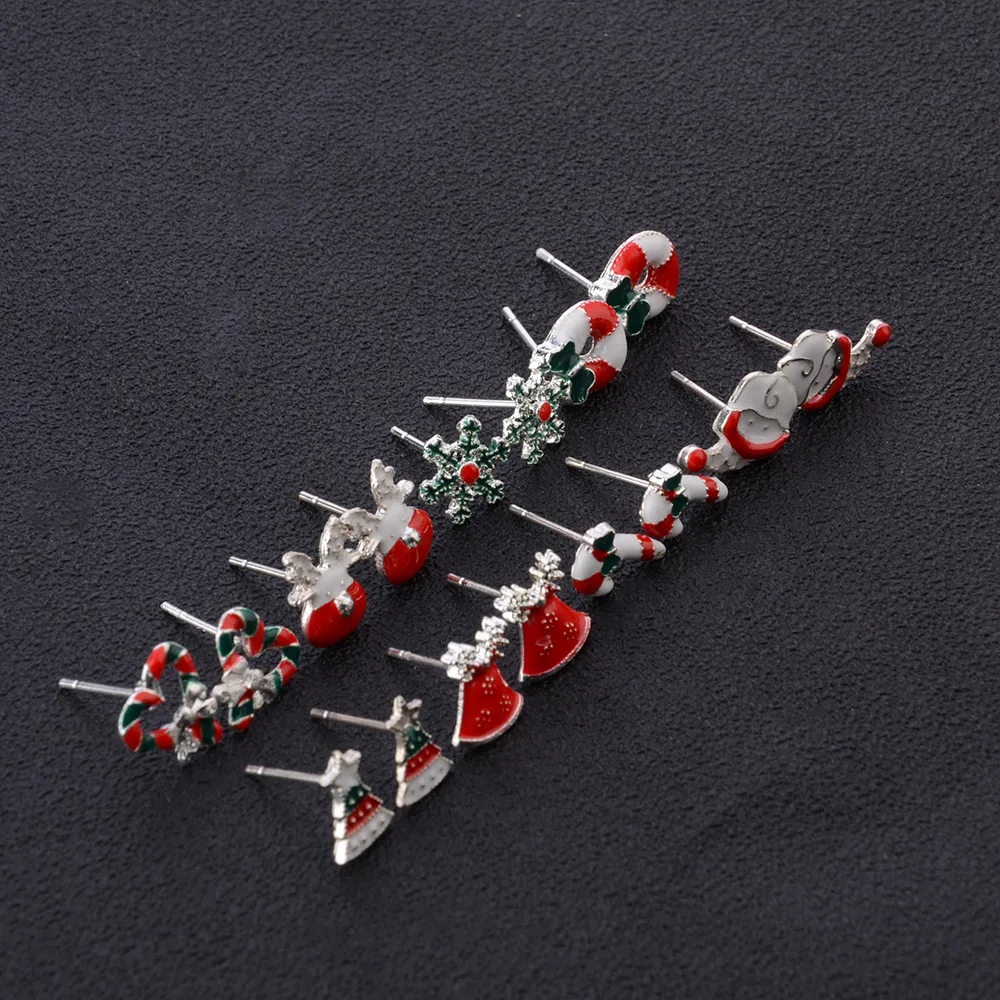 8 пар, серьги-гвоздики, ювелирный набор аксессуаров, милый Санта-Кл...