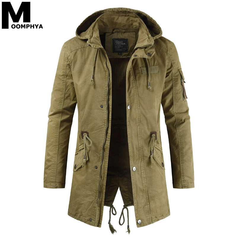 Длинная стильная зимняя мужская куртка Moomphya с капюшоном, уличная одежда, военная тактическая куртка, Мужская одежда 2019, ветровка, повседневное пальто для мужчин