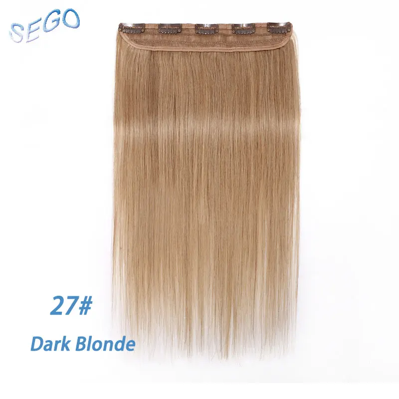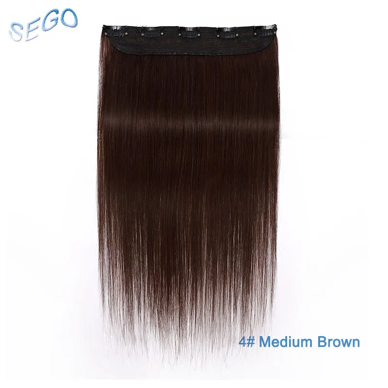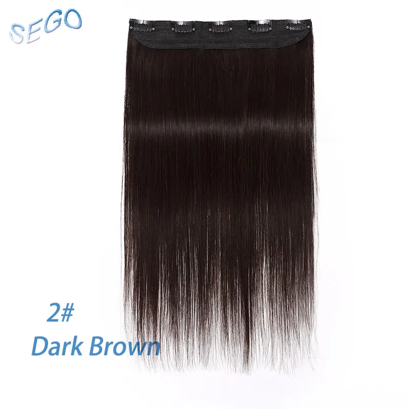 SEGO 10 "-24" зажим в одном кусочке 100% натуральные человеческие волосы для наращивания 1 шт.Вт 5 зажимов, не Реми, прямые индийские волосы 40 г-60 г