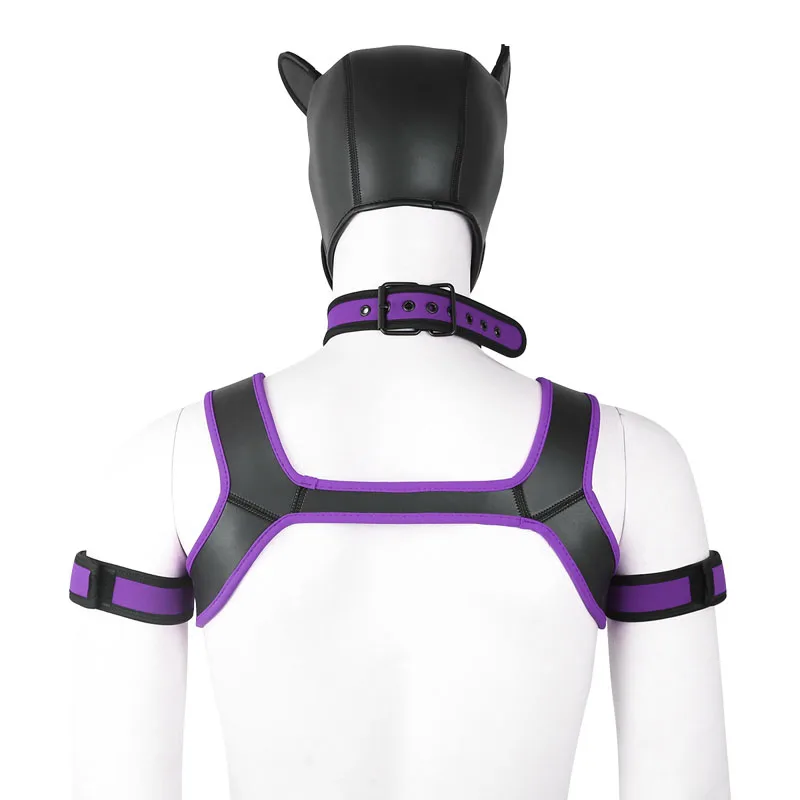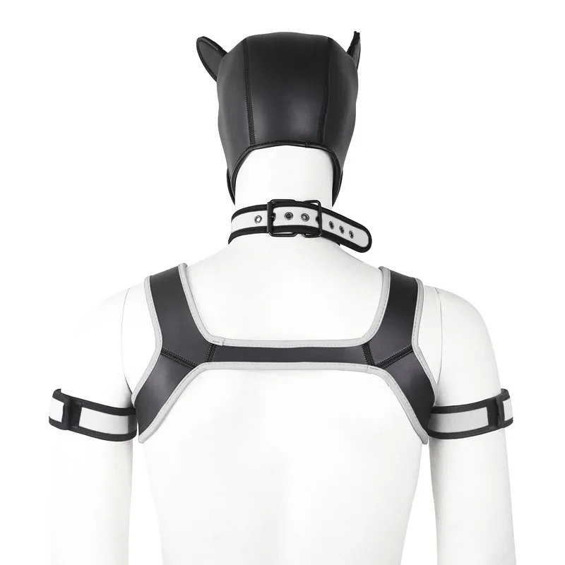 Капюшон имеет съемные мордочки.Материал: неопрен с губчатой подкладкой. Мягкий и прочный с влажным видом. Внутренняя сторона имеет мягкую губку, чтобы носить удобно.Размер на один размер:Окружность головы 58-61 смОбхват груди 90-100 см, высота 28 смШирина шеи 36-45 см регулируется пряжкамиПосылка на грудь: один нагрудный ременьКомплект: один капюшон, один воротник, одна пара повязок на руку, один нагрудный ремень