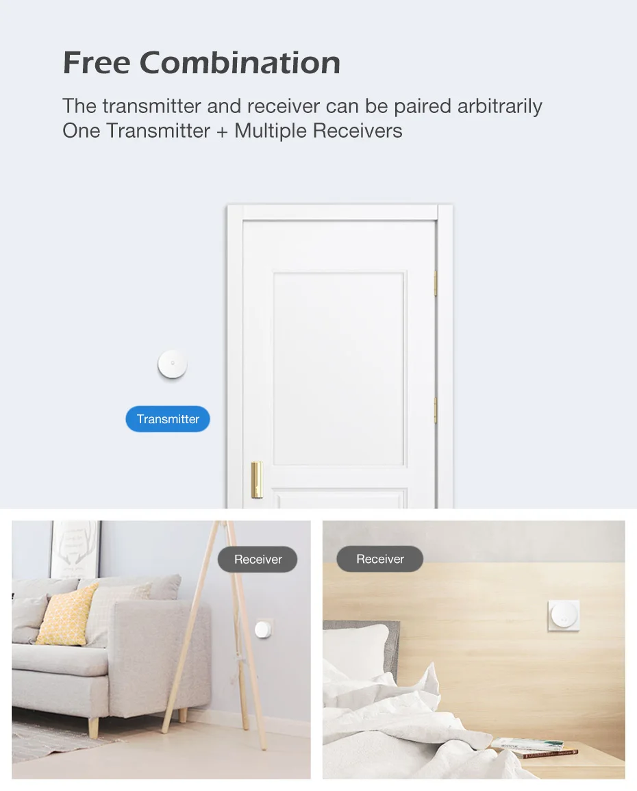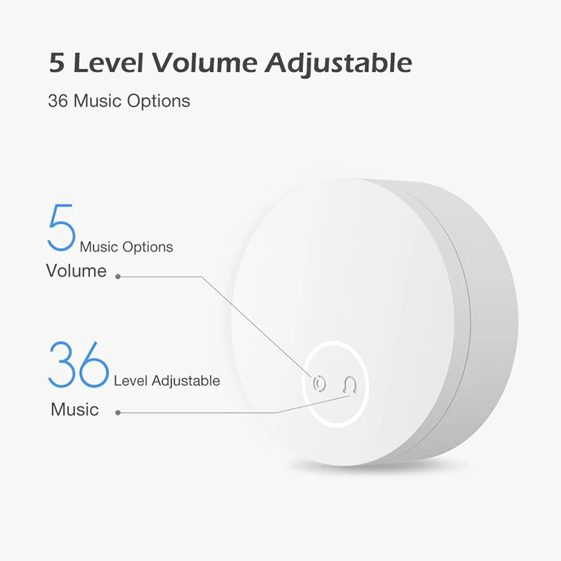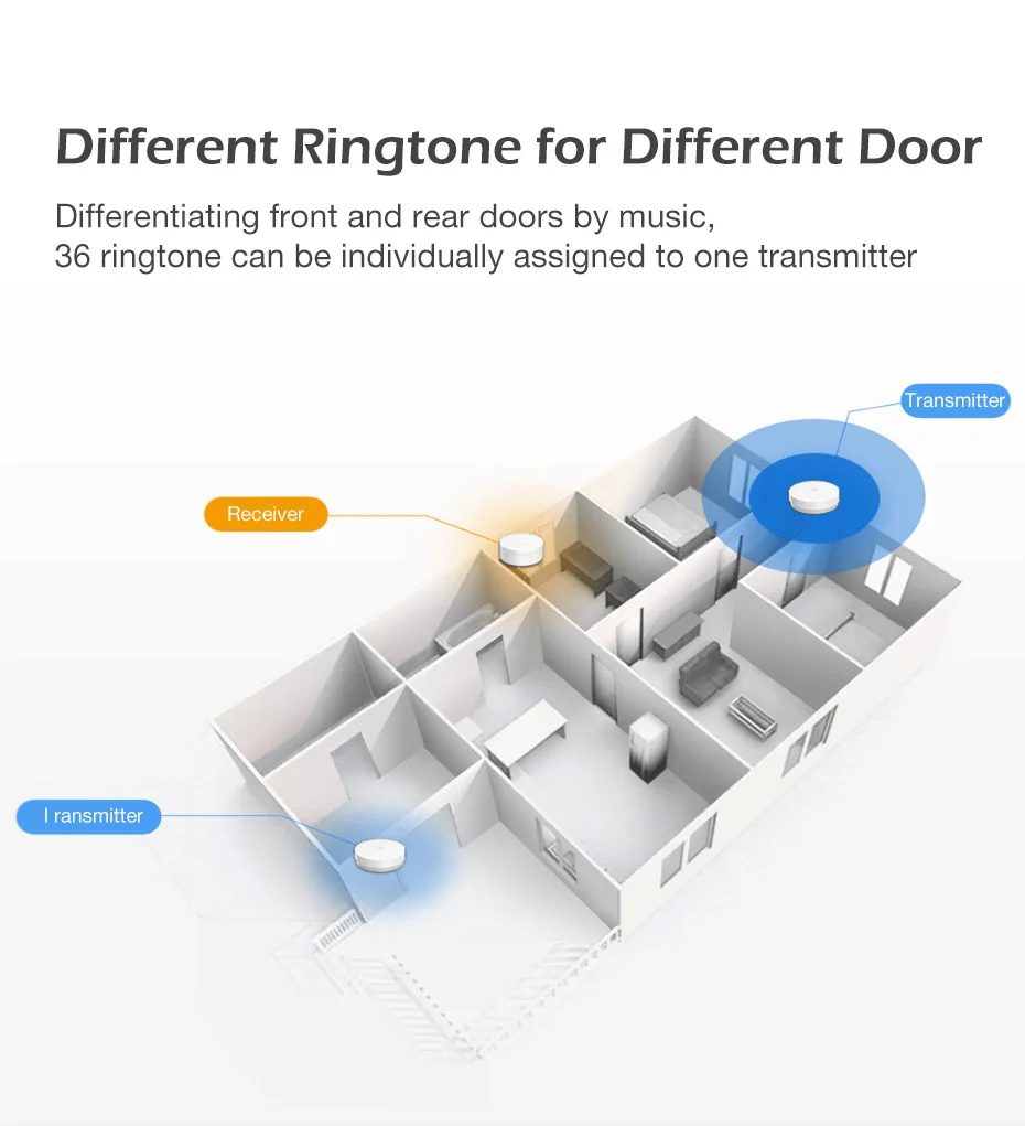 Разграничение передних и задних дверей музыкой, 36 мелодий звонка могут быть индивидуально назначены для одного передатчика