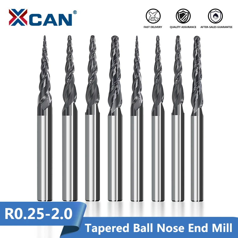 Концевые фрезы XCAN, твердосплавные сферические, 2 канавки, гравировальные насадки HRC55, для работ по дереву