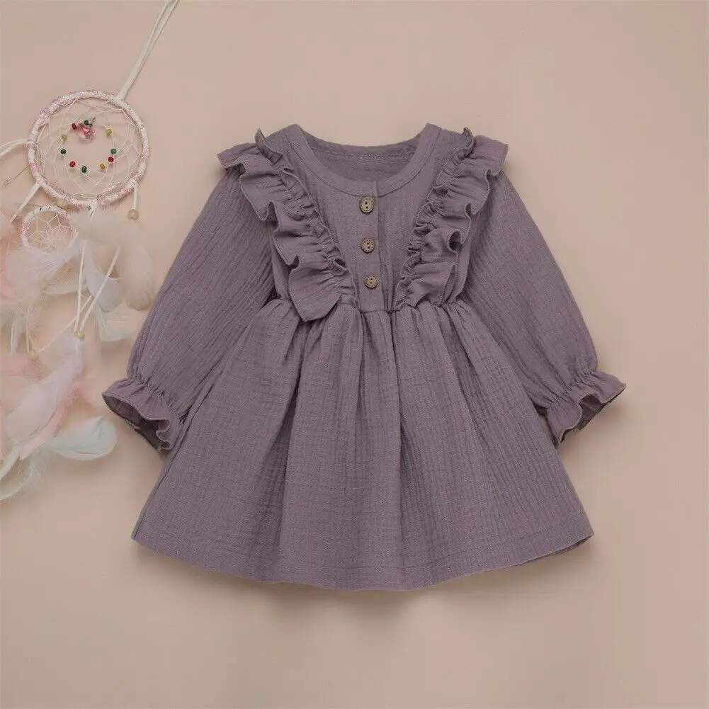 Осеннее платье для маленьких девочек, однотонное хлопковое льняное ...
