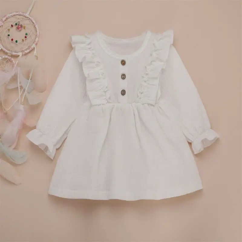Платье с длинными рукавами и оборками для маленьких девочек хлопков...