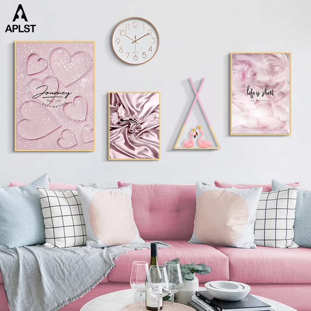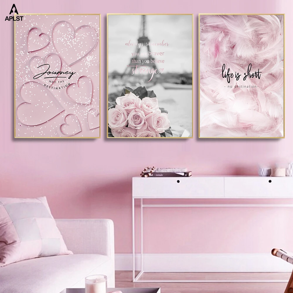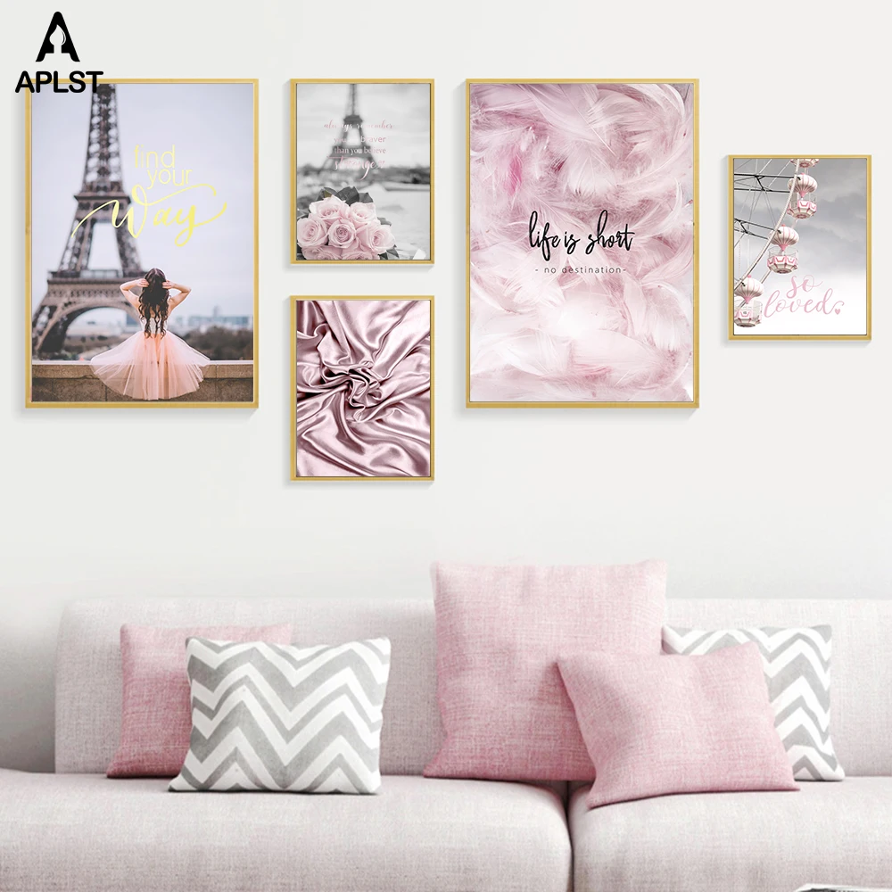 Романтический Французский Париж Розовый цветок перо Холст Плакаты и принты девушка в скандинавском стиле любовь настенная живопись декоративные картины