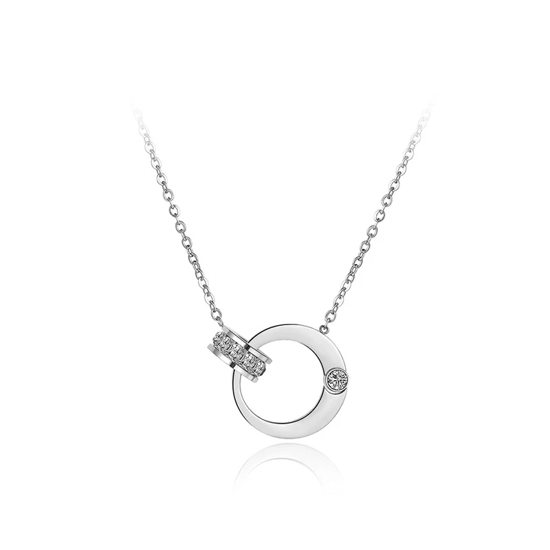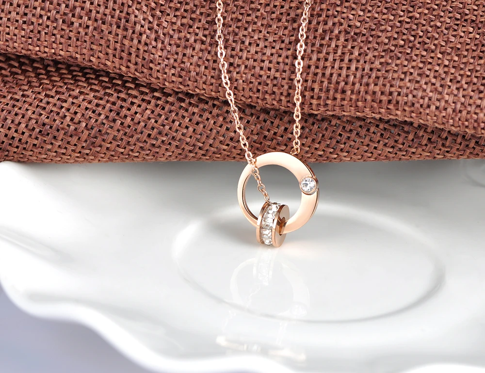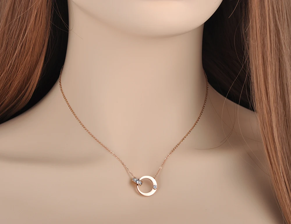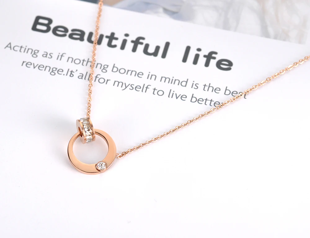 Цепочка и ожерелье BOBOTUU с двойным кольцом из кубического циркония, ювелирные изделия, титановая сталь, розовое золото, чокеры, ожерелье для женщин BN18054