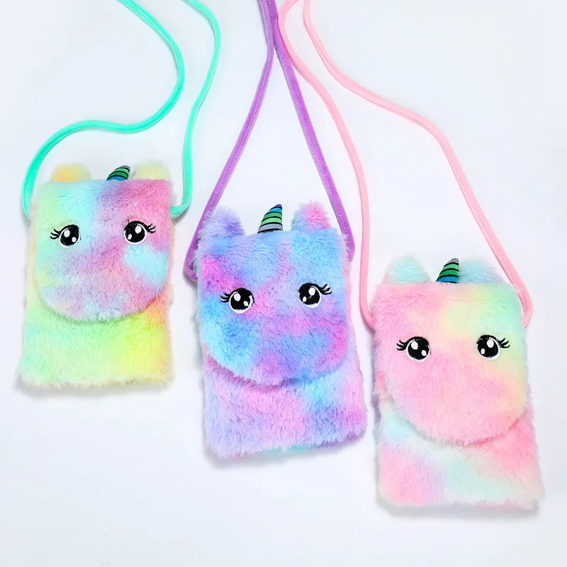 Новый милый плюшевый мультяшный Кошелек для монет, сумки через плечо с единорогом для девочек, мини-сумка, Детская сумка-мессенджер, Женский чехол для телефона, детские подарки