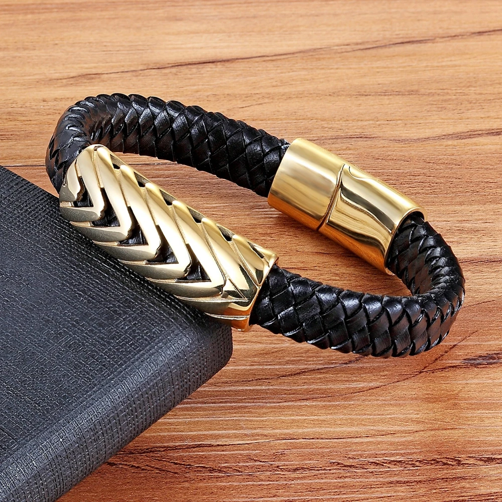 Классический кожаный браслет из нержавеющей стали, 2 цвета, черный ...