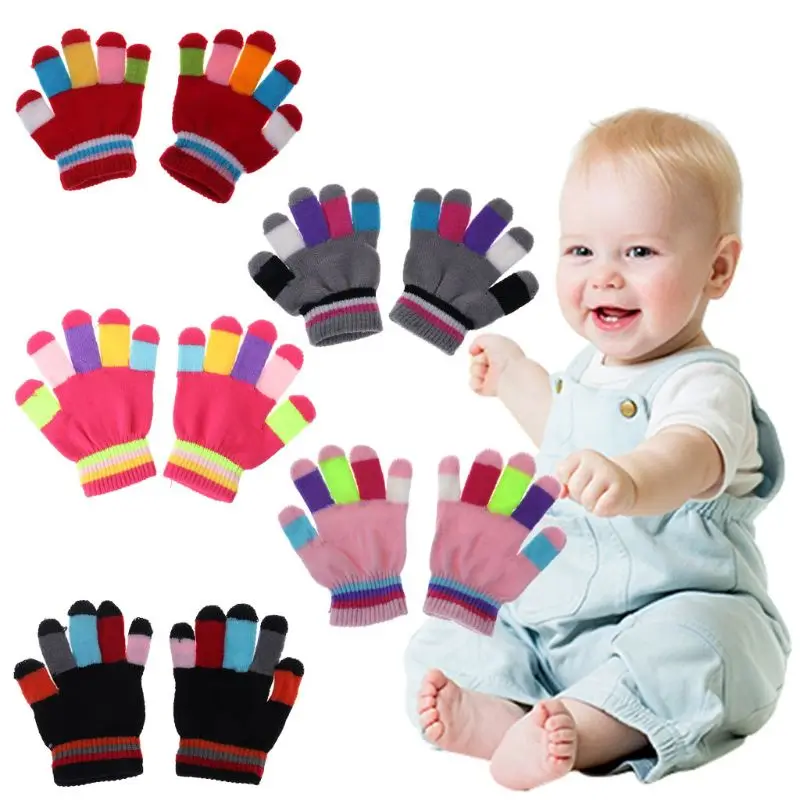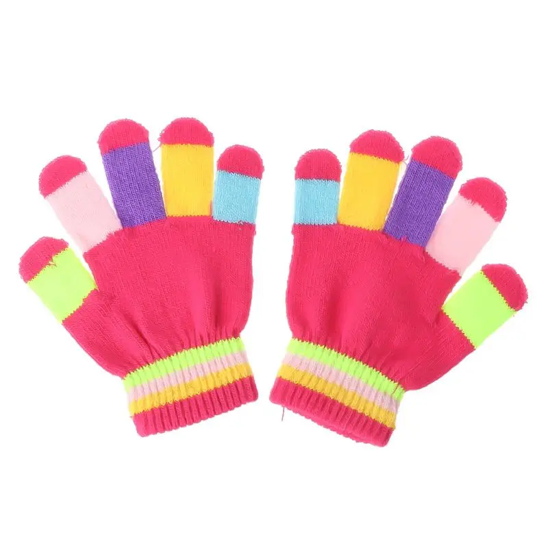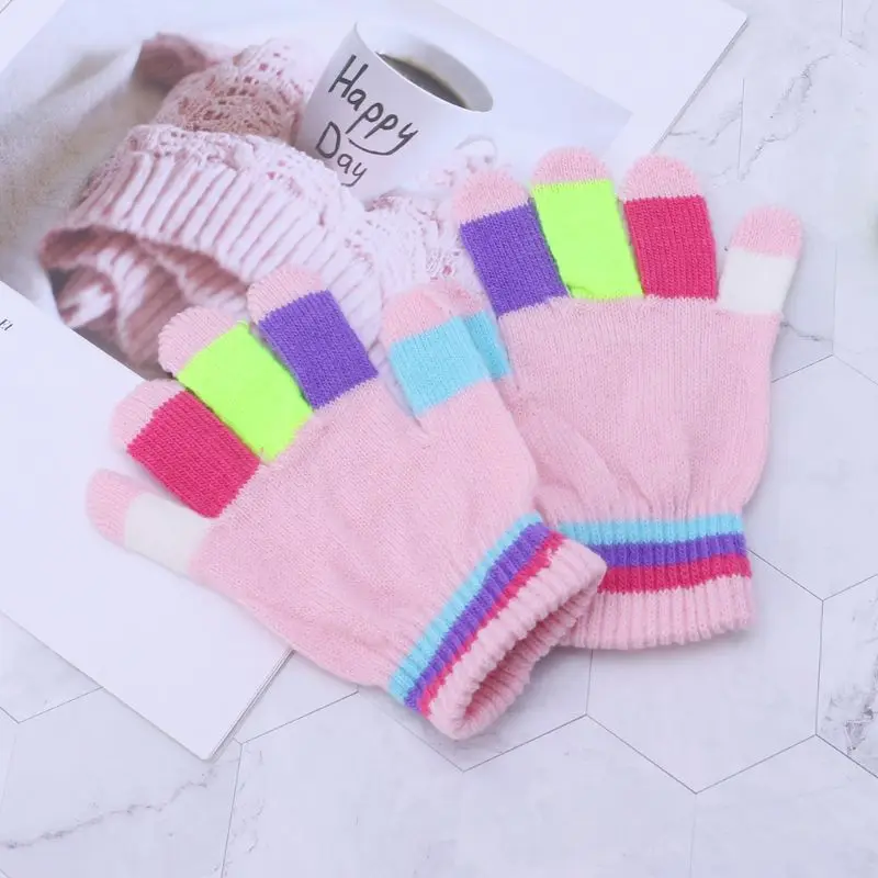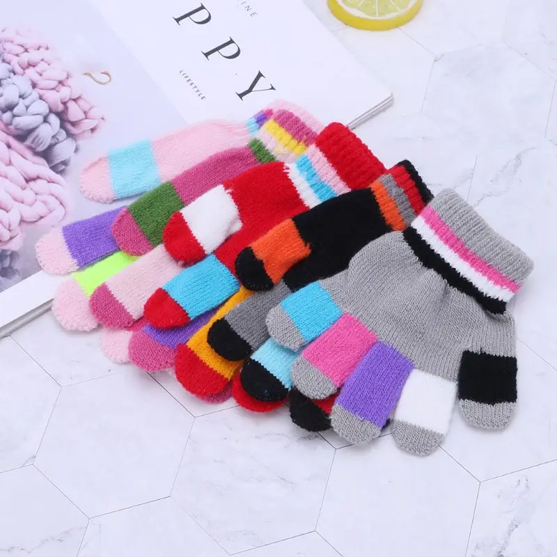 1 пара, детские перчатки, теплые зимние детские цветные вязаные перчатки в полоску для мальчиков и девочек, Однотонные эластичные перчатки разных цветов