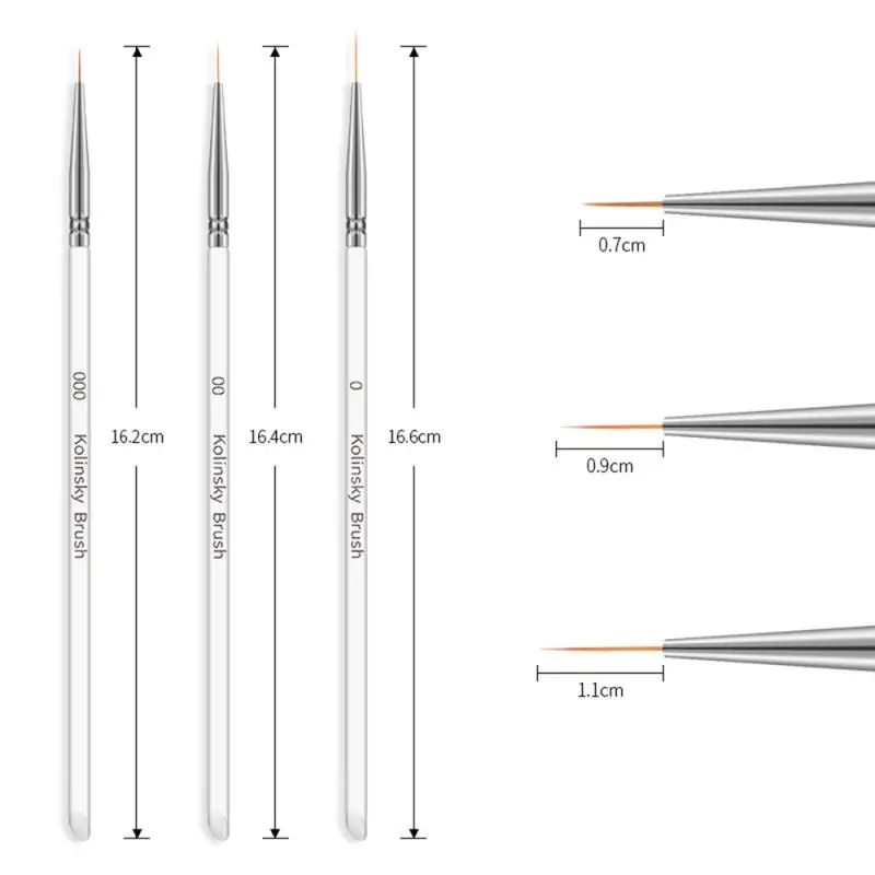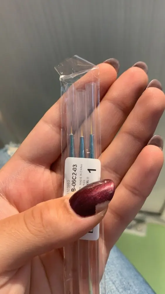 Хорошие кисти, хорошие волосы, они ничего не теряют. Я использую их, чтобы нарисовать на маленьких ногтях и мелкие детали. Они прибыли быстрее, чем ожидалось, идеально упакованы отдельно и с защитой фильмов. Доволен своей покупкой, я буду покупать здесь