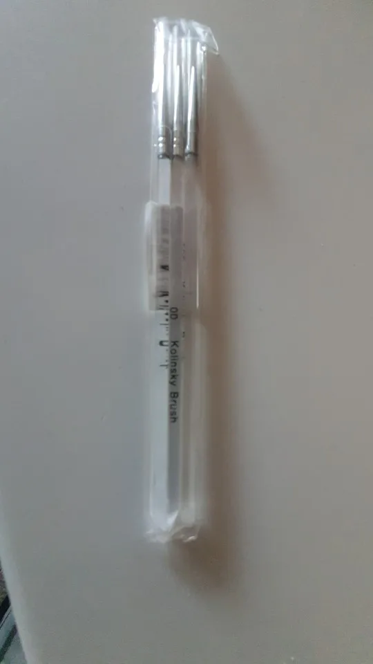 Отличные кисточки. Три разных номера - разная толщина щетины. Правда, нумерация интересная - 0, 00, 000. Кончик скошеный, очень удобно. Посылка не отслеживалась совсем. В Украину дошла за полтора месяца. Получила на почте.