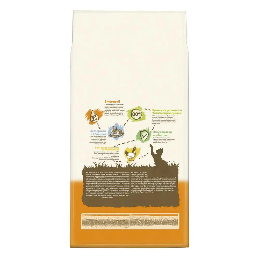 Ваша кошка — уникальное создание. Чтобы она продолжала радовать вас, Purina создала корм Cat Chow® - корм с качественным белком и натуральными ингредиентами (петрушка, шпинат, морковь, цельные зерна злаков, цикорий и дрожжи). Он отличается высоким содержанием домашней птицы и включает Naturium® - особое сочетание волокон из натуральных источников, а также источник натурального пребиотика, который поддерживает здоровое пищеварение кошки. Это позволяет ей питаться с большей пользой. Основываясь на нашей экспертизе с 1926 года, мы разработали полнорационный, сбалансированный корм Purina® Cat Chow®, в котором есть все необходимое, чтобы жизнь вашей кошки была здоровой и естественно прекрасной. Преимущества: – С 1926 года эксперты Purina применяют свои знания и опыт, чтобы создавать полноценное питание для здоровья домашних питомцев – Корм Purina® Cat Chow® бережно приготовлен с натуральными ингредиентами (петрушка, шпинат, морковь, цельные зерна злаков, цикорий и дрожжи) для придания особого аромата, который кошки выбирают инстинктивно – Комплекс Naturium® в кормах Purina® Cat Chow® — это особое сочетание волокон природного происхождения. Он включает источник натурального пребиотика, который, как было доказано, улучшает баланс микрофлоры кишечника и поддерживает здоровье пищеварительной системы кошки. Это позволяет ей питаться с большей пользой – С витамином E для поддержания естественной защиты организма кошки и витаминами группы B для оптимального использования энергии – БЕЗ добавления красителей, искусственных ароматизаторов и консервантов Рекомендации по кормлению: Значения рассчитаны для кошек с умеренной активностью при нормальной температуре окружающей среды. Индивидуальные потребности могут варьироваться, и кормление должно быть скорректировано для поддержания вашей кошки в оптимальном весе. Следите, чтобы у вашей кошки всегда была чистая свежая питьевая вода. Переводите кошку на корм Purina® CAT CHOW® постепенно в течение 7 дней. Состав: злаки (цельное зерно*), мясо и продукты переработки мяса (20%, эквивалентно 40% регидрированного мяса и продуктов переработки мяса, не менее 14% домашней птицы), продукты переработки растительного сырья (2,7% сухой мякоти свеклы; 0,07% сухой петрушки, что эквивалентно 0,4% петрушки*), растительные и животные жиры, экстракты растительного белка, овощи* (сушеный корень цикория; сухая морковь; сухой шпинат), консерванты, минеральные вещества, дрожжи*, витамины, антиоксиданты. *Натуральные ингредиенты. Страна производства: Россия Условия хранения: В сухом прохладном месте