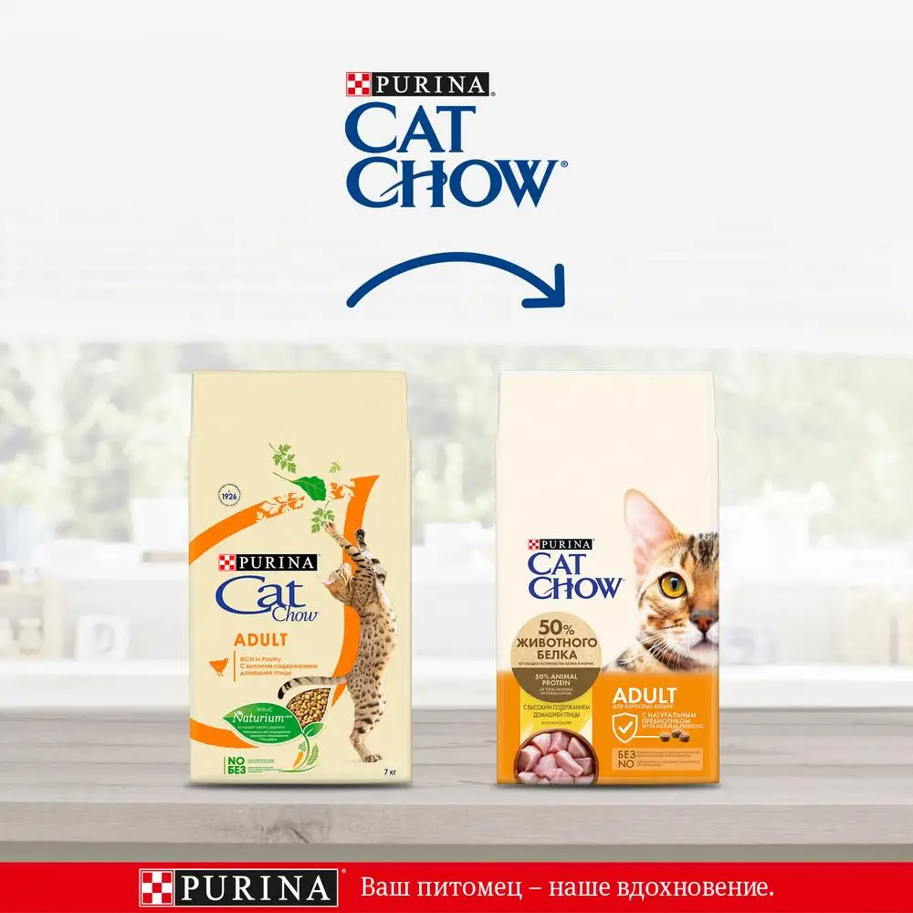 Сухой корм Cat Chow для взрослых кошек с высоким содержанием домашней птицы, Пакет, 7 кг