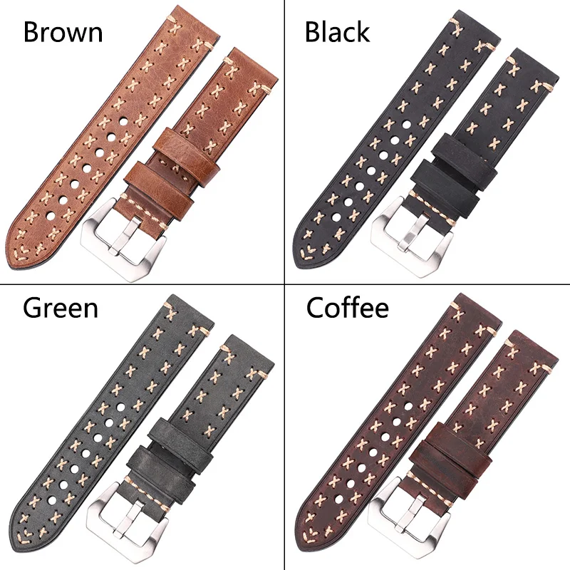 Ремешок кожаный для наручных часов, итальянский винтажный браслет для мужских и женских часов, коричневый черный зеленый кофе, аксессуары для часов, 22 24 мм