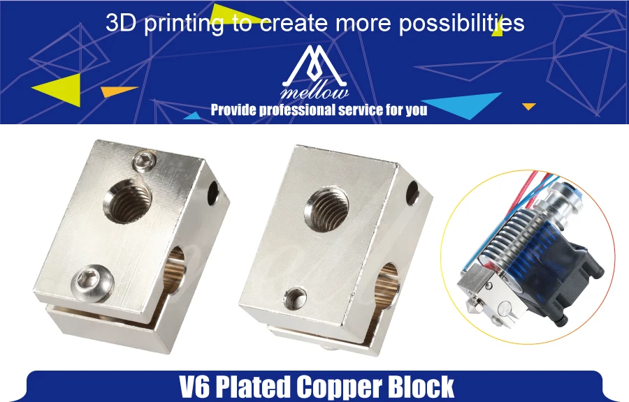 Блок нагревателя Mellow V6, цельнометаллический, медный, для 3D-принтера PT100 J-head v6 Hotend