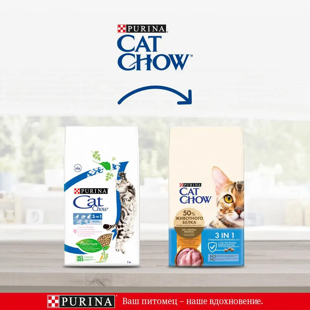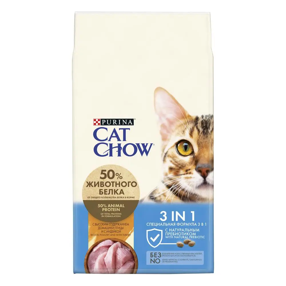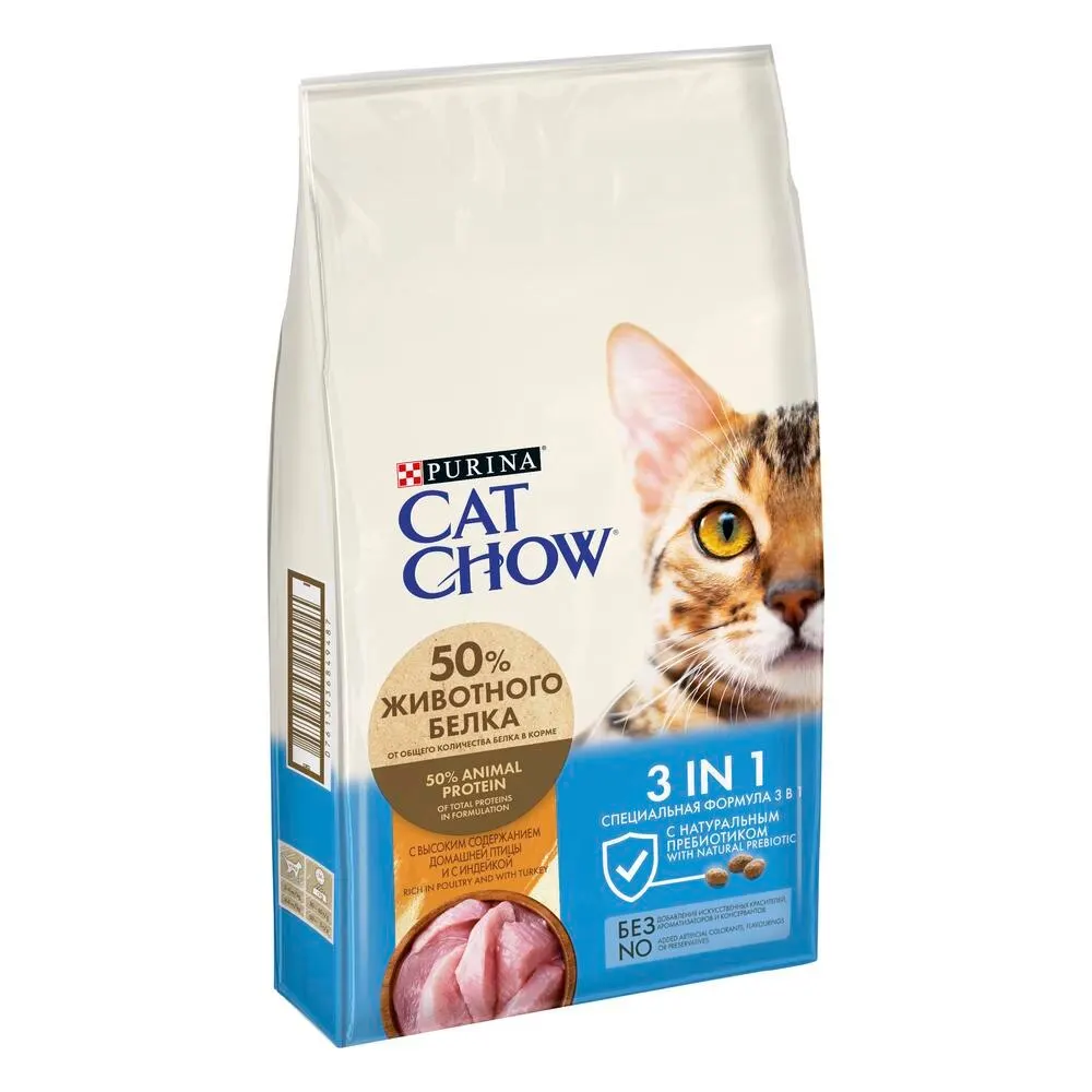 Сухой корм Cat Chow для взрослых кошек с формулой тройного действия, с индейкой и высоким содержанием домашней птицы, Пакет, 7 кг
