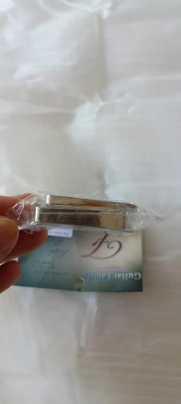 Отличное качество материала, настоящий металл, не пластик. Второй раз уже такие заказываю. Хромированное покрытие ровное, выглядит солидно. В комплекте идут шурупы в цвет рамок: короткие для нековой, длинные для бриджевой. Низ плоский, верх немного закруглен. Единственный момент: расстояние между отверстиями чуть больше, чем у стандартных пластиковых рамок, и сами рамки немного больше, чтобы в них поместились датчики в металлических крышках. Скошенный верх идеально подходит для гитар с tun-o-matic. Продавцу спасибо за быструю отправку и надёжную упаковку.