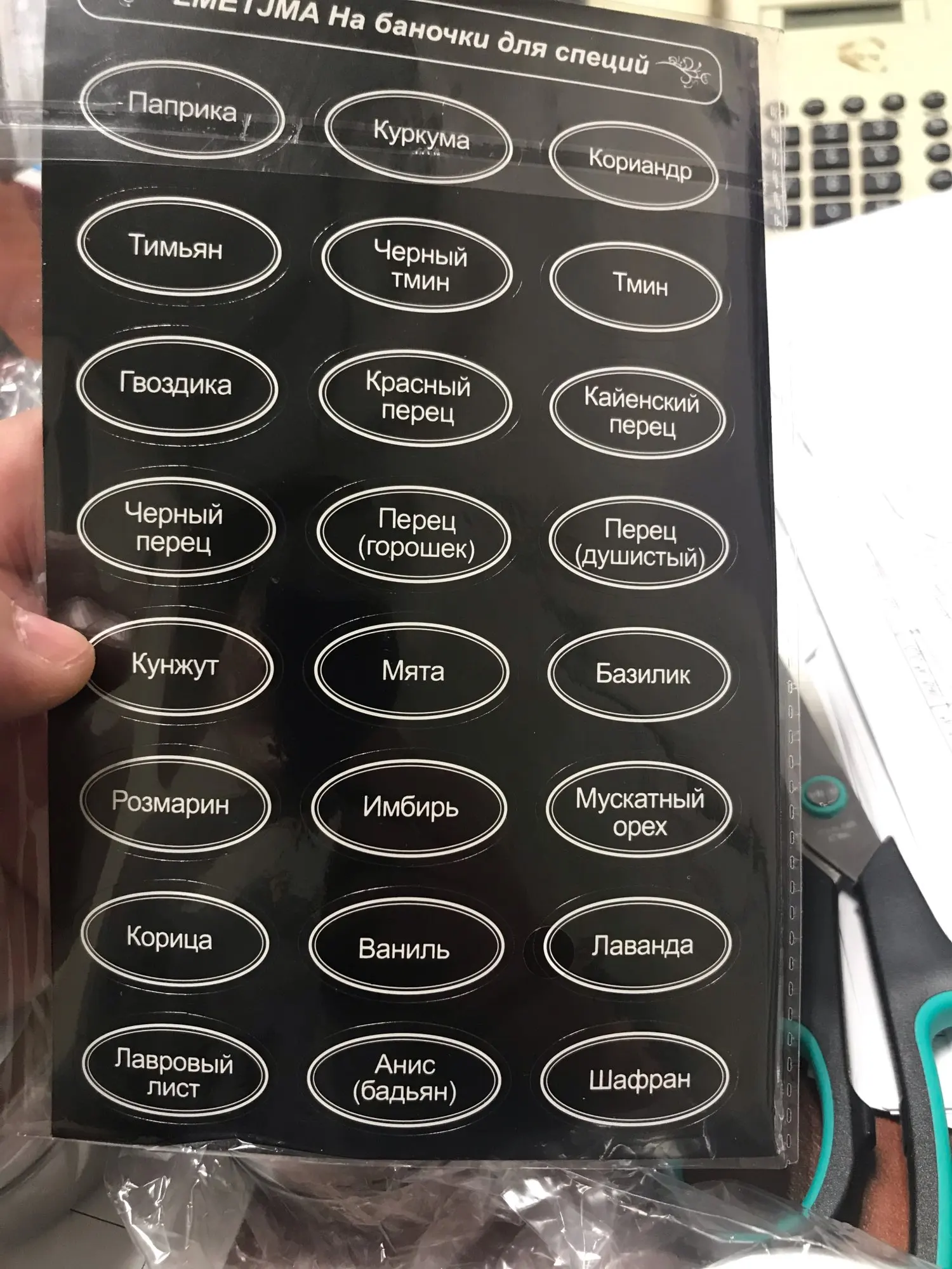 замечательные баночки. пришли быстро. держатся на магните хорошо. закрываются плотно. всем советую. перед использованием обязательно помойте. наклейки с названиями специй на 3 листах и 3 листа можно подписать самим.
