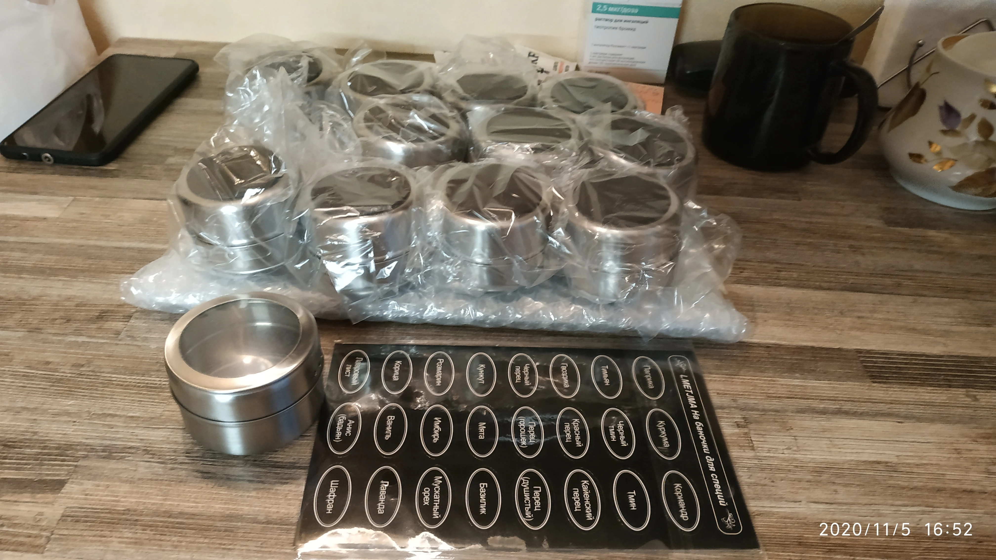 Очень интересные и добротно сделанные баночки. Магнитят хорошо. Не забудьте снять пленки с двух сторон пластикового окошечка. Закрываются хорошо, но три штуки слабоватые, как бы не просыпались специи. Смотрятся хорошо. Доставка быстрая, упаковано очень хорошо, такому грузу и почта России не страшна. Запах есть небольшой, после мытья, надеюсь, исчезнет. Когда наполню специями, пришлю дополнительный отзыв и фото.