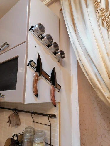 Очень удобный органайзер для приправ. Сверлить ничего не надо, он надежно приклеивается на двусторонний скотч к кафелю. Не забудте его обезжирить сначала. Однозначно мастхэв, если они вписываются в ваш интерьер.