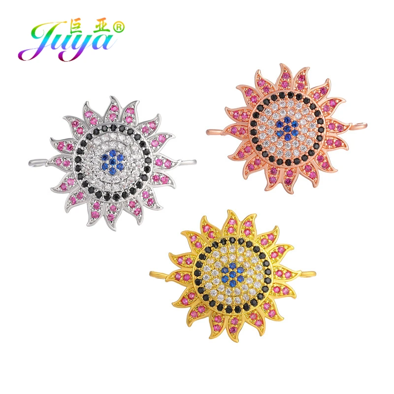 Компоненты для изготовления браслетов и серег Juya сделай сам, микро-ПАВЕ, многоцветный циркон, греческий сглаза, шарм, соединители, аксессуары