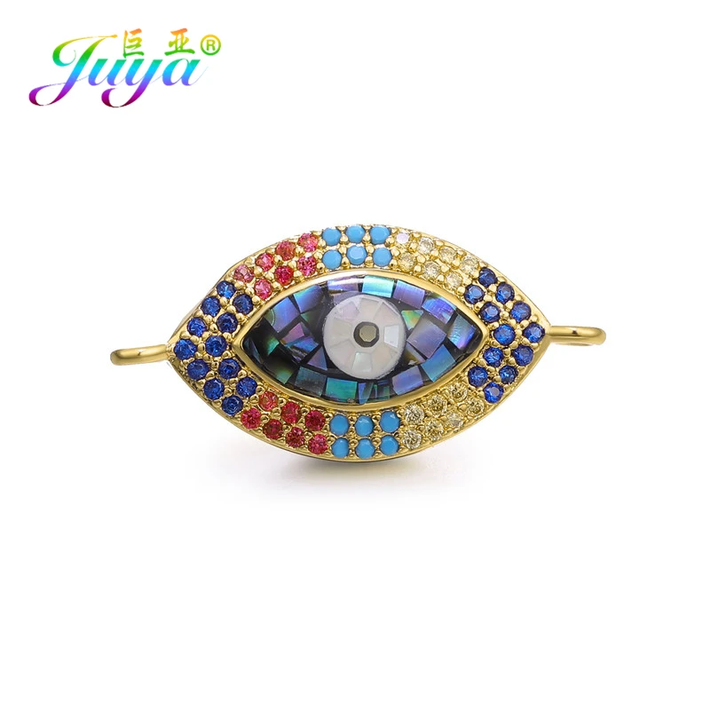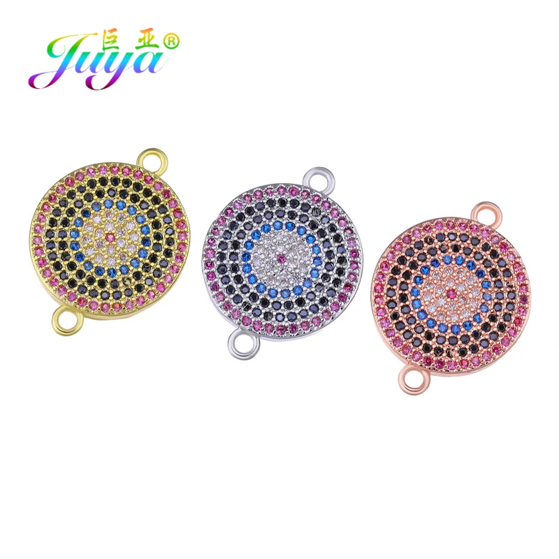 Juya DIY браслет ожерелье серьги компоненты микро проложить многоцветный Циркон греческий сглаза шарм Разъемы аксессуары
