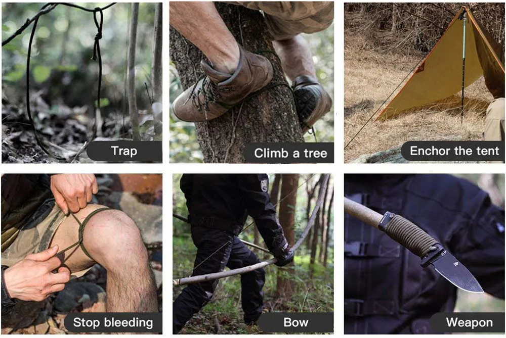 Материал Паракорда: диаметр каната-0,16 дюйма; Нейлоновая веревка аутсайдера и 7 внутренних нитей вкладыша; Коррозионная стойкость, Антивозрастная