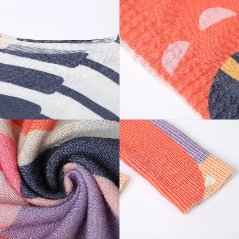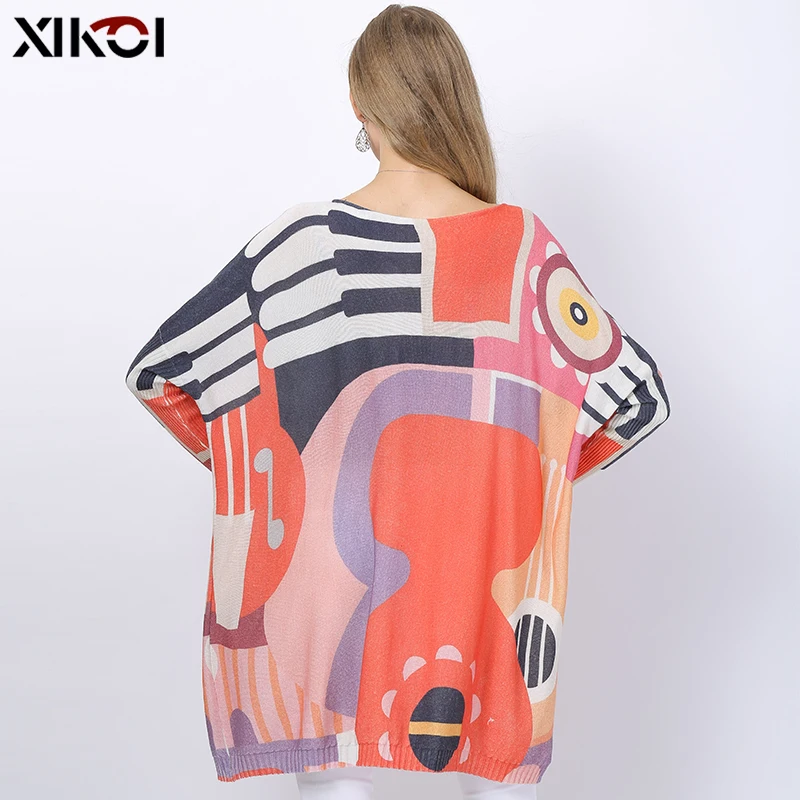 Женский свободный свитер с рукавом летучая мышь, трикотажный пуловер оверсайз, платье-свитер с лоскутным принтом и круглым вырезом, шерстяной джемпер