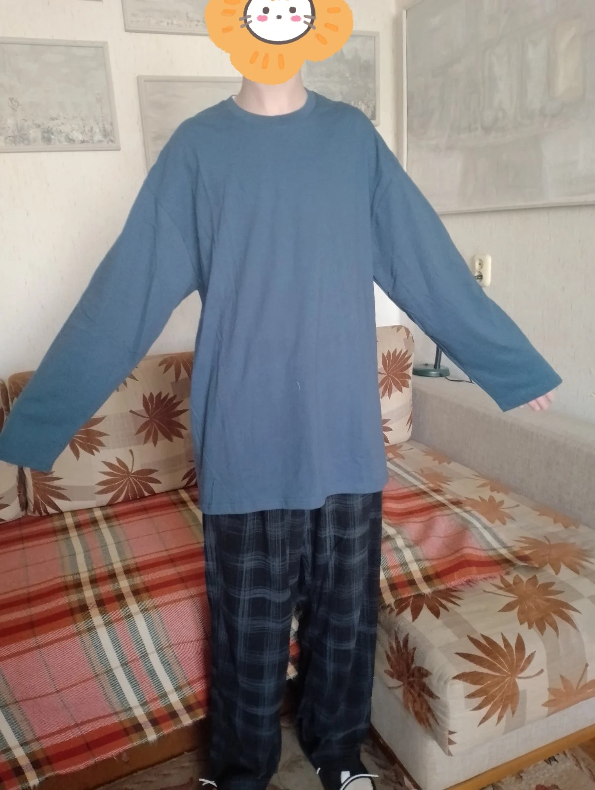 Футболка мужская оверсайз с длинным рукавом и круглым вырезом