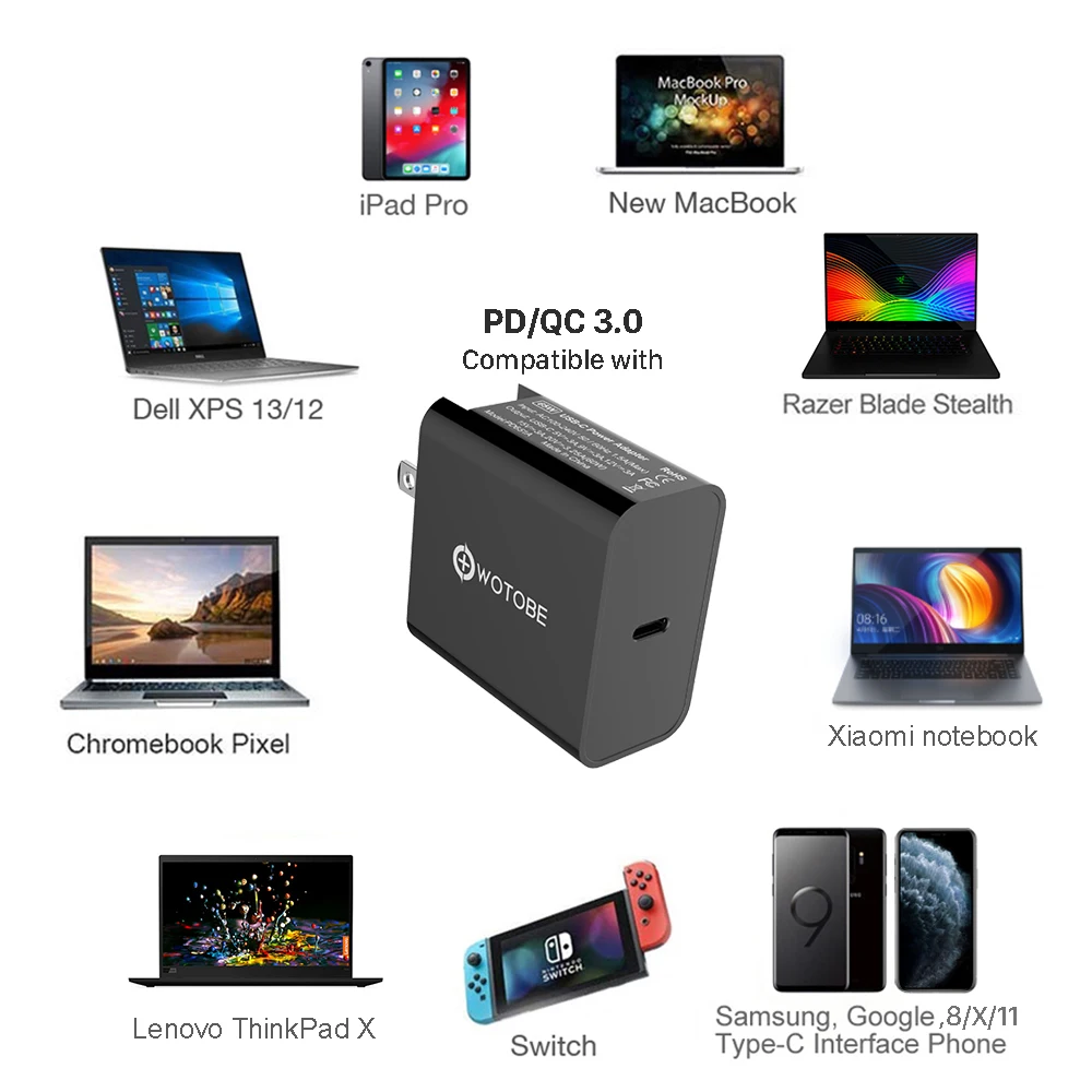 WOTOBE USB-C зарядный кабель адаптер питания 18 Вт 30 Вт 45 Вт 60 Вт 65 Вт PD зарядное устройство для MacBook Pro/Air iPhone/iPad Pro/Samsung/Huawei/Google Pixel/ One Plus/и т. Д. (Стандартный USB-C кабель) Поддержка PD протокола быстрой зарядки и другого оборудования PD3.0 сотовый телефон QC TYPE-C USB зарядное устройство для MacBook Pro / DELL XPS 12/13 / Samsung Note 8/9 S9 S10 Примечание: Этот распределительный кабель поддерживает максимальную зарядку PD60W Примечание: для зарядки до 65 Вт требуется кабель 5А E-Mark 100 Вт. Примечание: Samsung Note 10/10 + быстрая зарядка не поддерживается Для 65 выходов, пожалуйста, приобретите 5А E-Mark 100W кабель отдельно. Nota: los adaptadores de alibentación USB C no son adecuados Dell de metal superpole 5370/5390 Inspirion 7590 65 W carga de Dell de metal superpole 5370/5390 65 W los propietarios no comprar