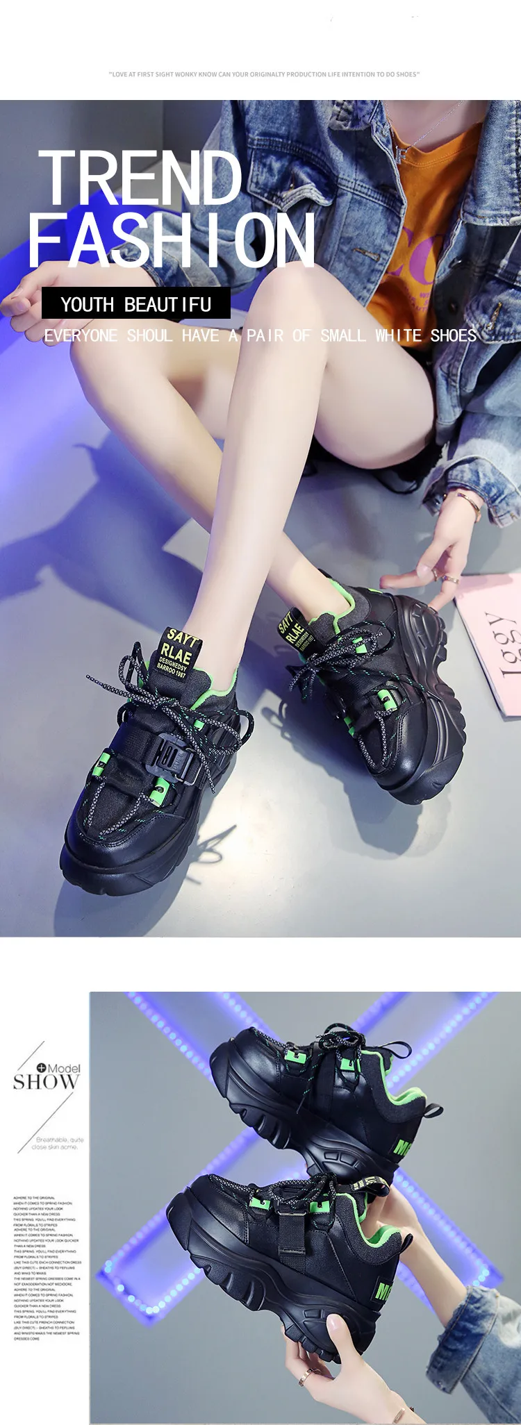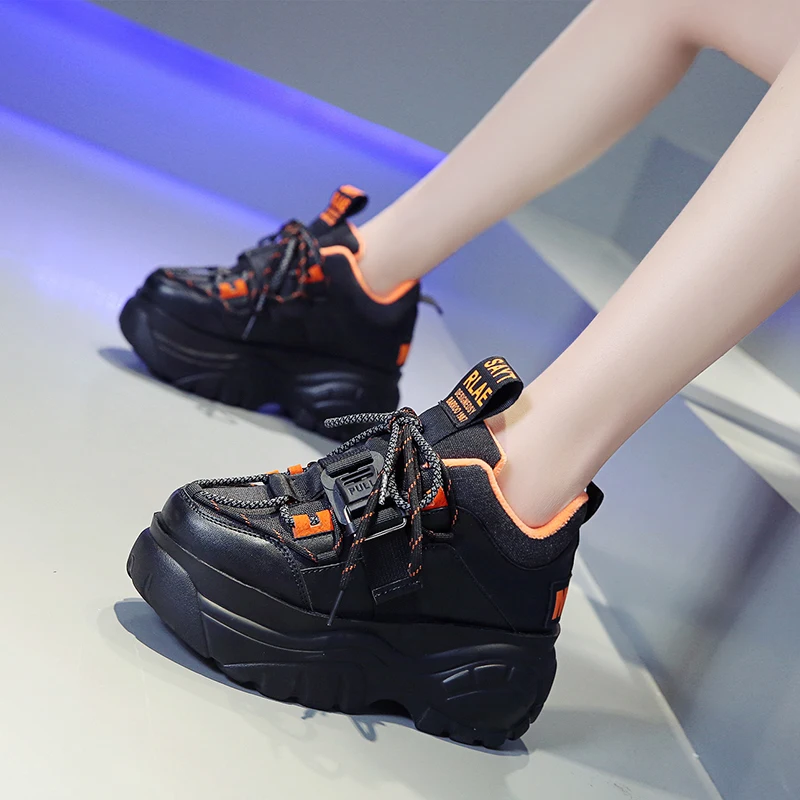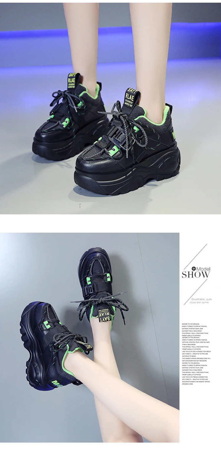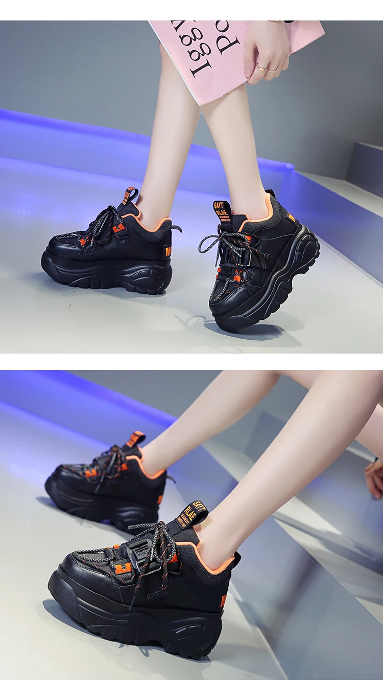 Кроссовки женские на платформе, со шнуровкой, толстая подошва 7 см