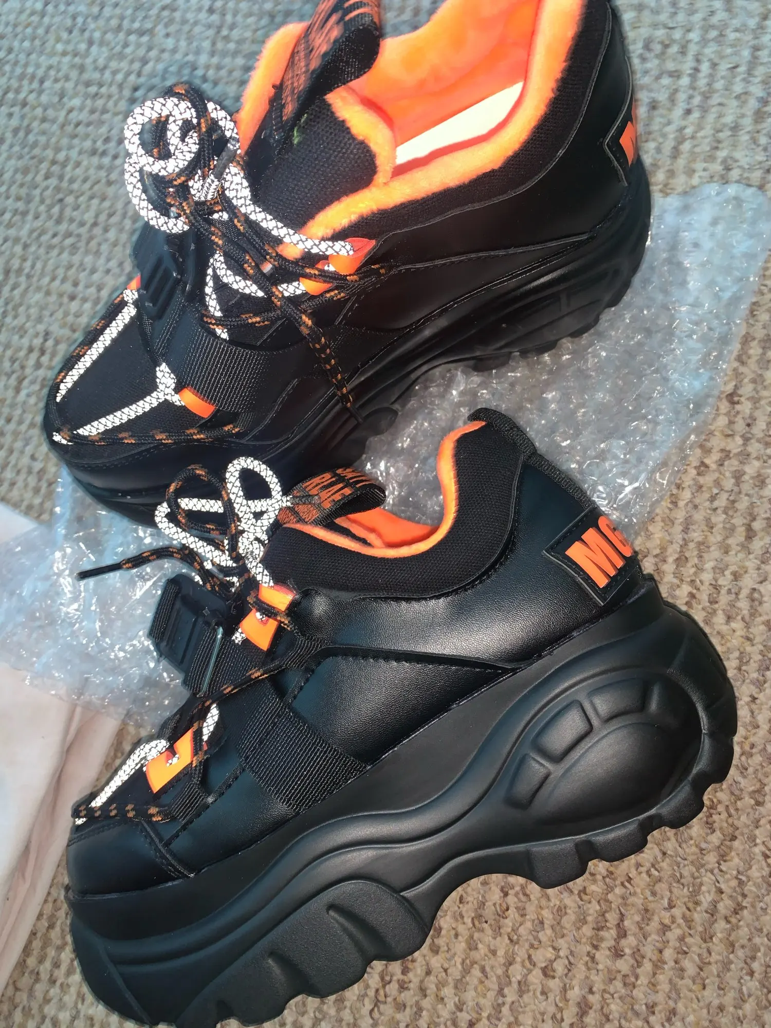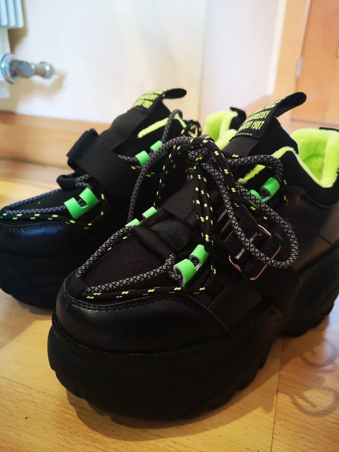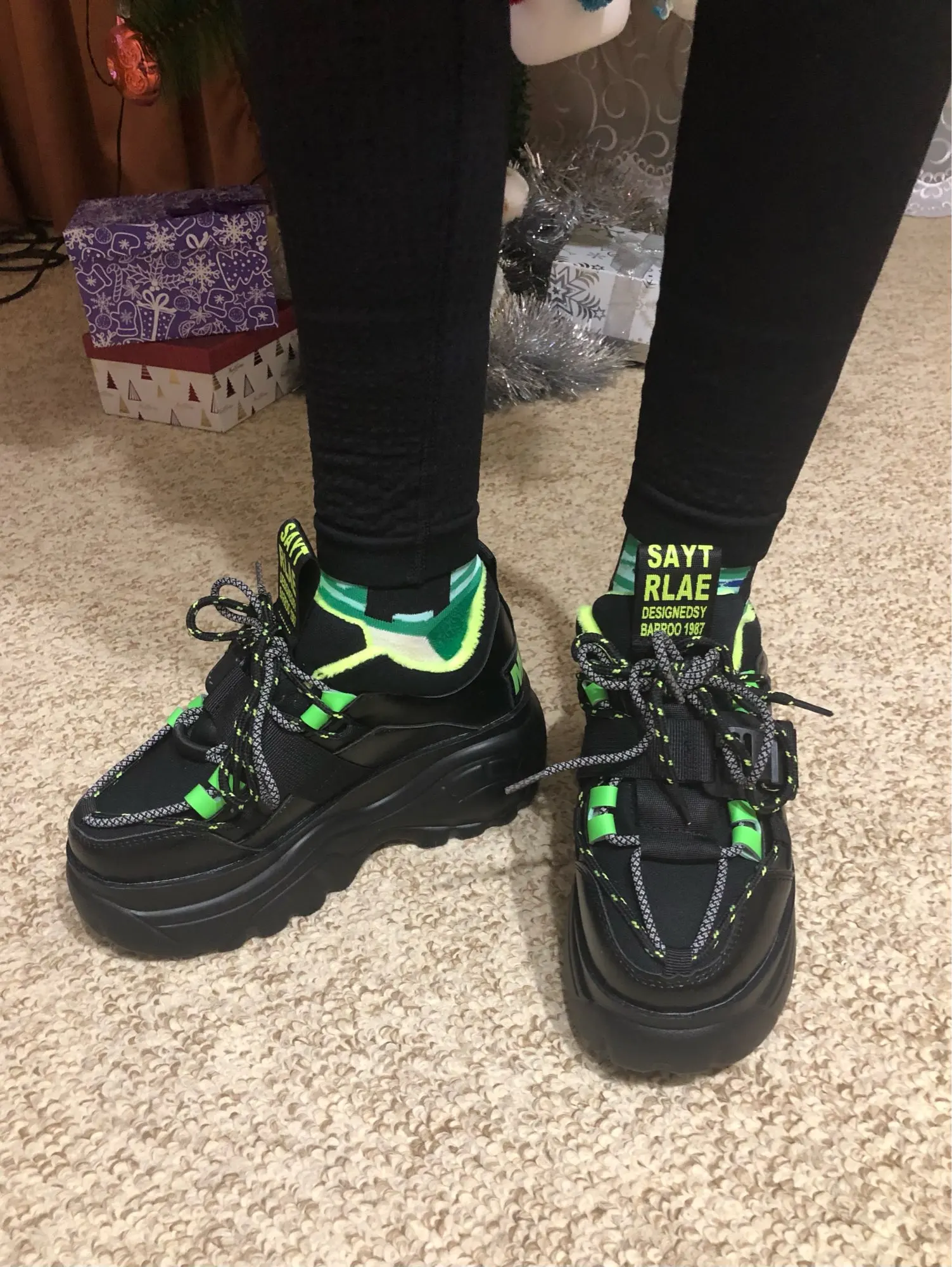 крутышки!! самый классный бренд my gavno only mine( кто шарит ю ноу блин) короче у кого реально 39 (24.5) размер лучше не брать, ибо маломерят надписи стремные но их можно отрезать(что я и сделала) sayt rlae стэй рил походу сделаны из кожи, но не совсем, клей виден, но не сильно на ноге думала будут выглядеть громоздкими, но они маленькими выглядят хоть и самый большой размер брала пришло кста за 7 дней в dpd