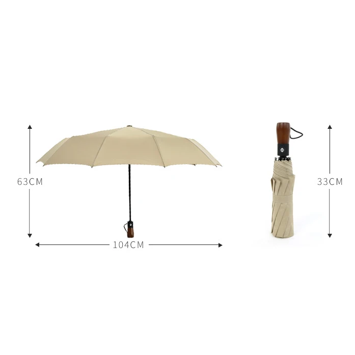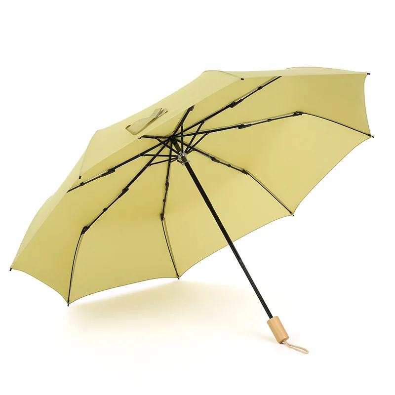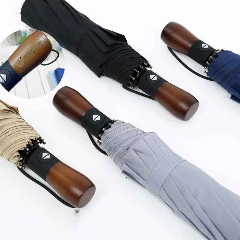 Автоматический складной зонт высокого качества, мужской деловой зонт с деревянной ручкой в стиле ретро, трехскладной зонт, мужские подарки