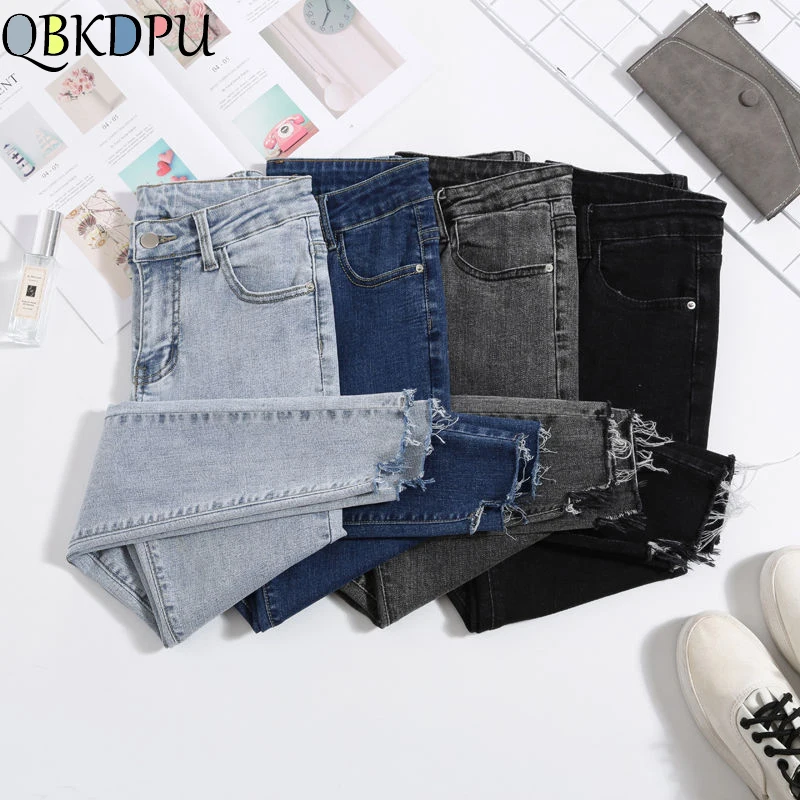 Женские джинсы, женские узкие эластичные джинсы стрейч с высокой талией, женские джинсовые брюки, новые брюки-карандаш светло-голубого, серого и черного цветов