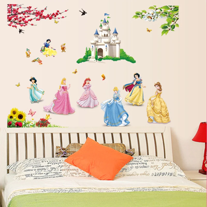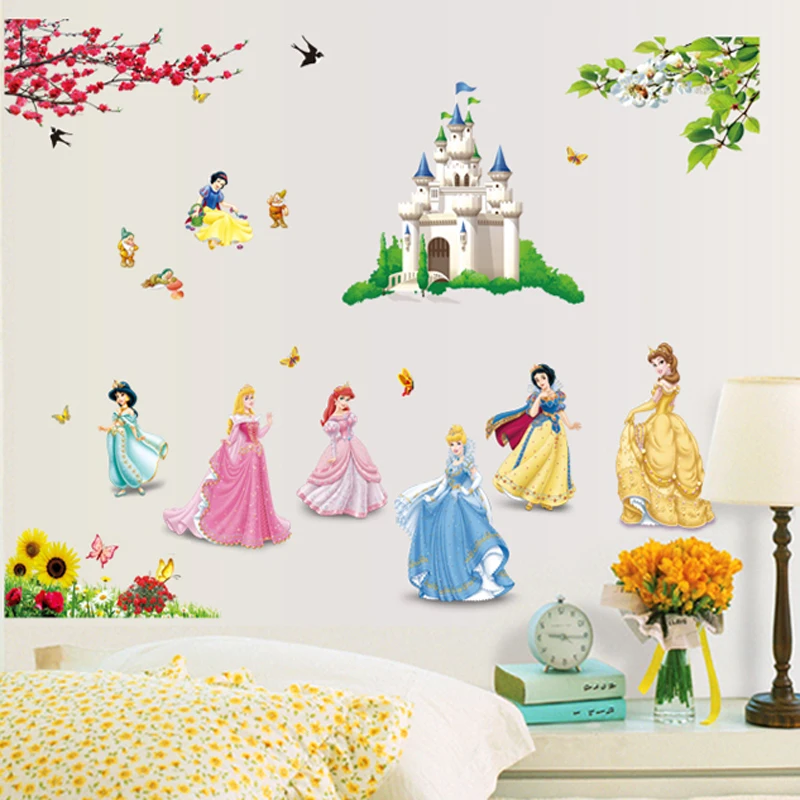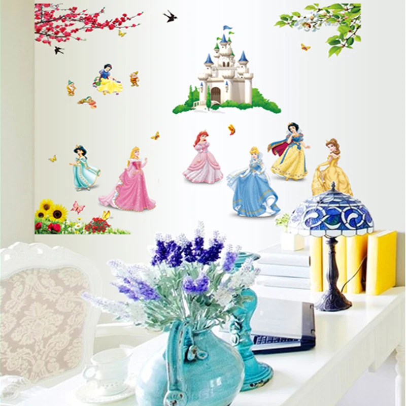 Мультфильм Белоснежка Принцесса замок наклейки на стену девочки дети спальня домашний декор настенные наклейки виниловые художественные фрески бумага Плакат Наклейка