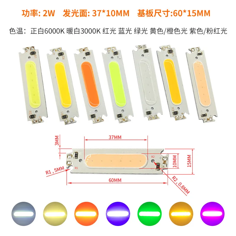 Длинная лента 60*15 мм, 2 Вт, 12 В, монолитный блок светодиодов, плоский источник света, лампочки, красный, оранжевый, желтый, зеленый, синий, белый, фиолетовый светодиодный чип